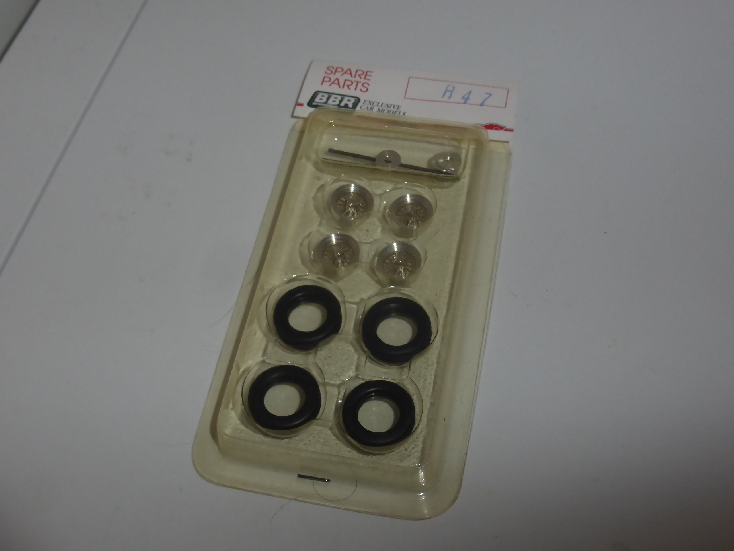 Turned aluminium rims, rubber high definition tires, photo-etched wires.