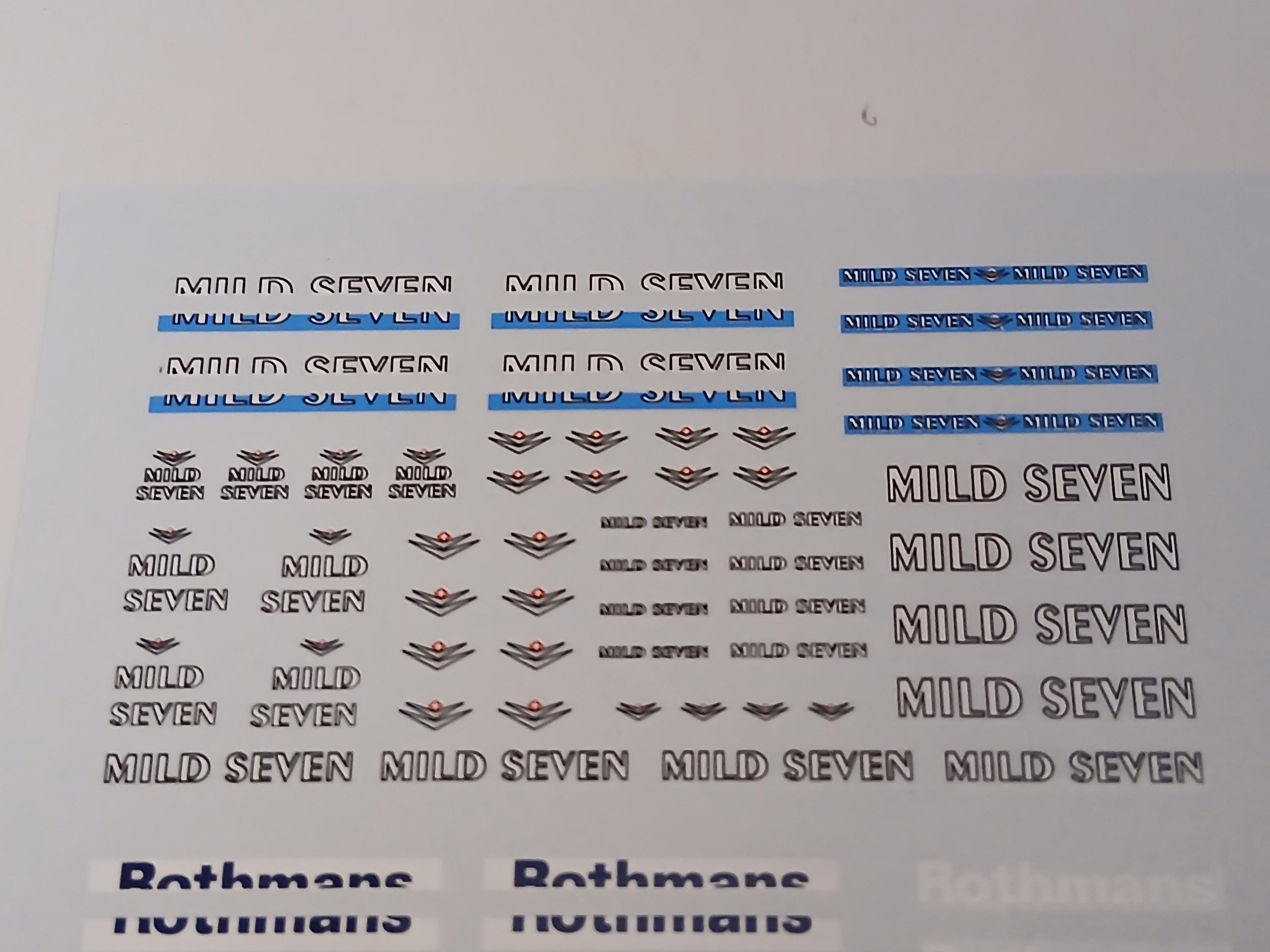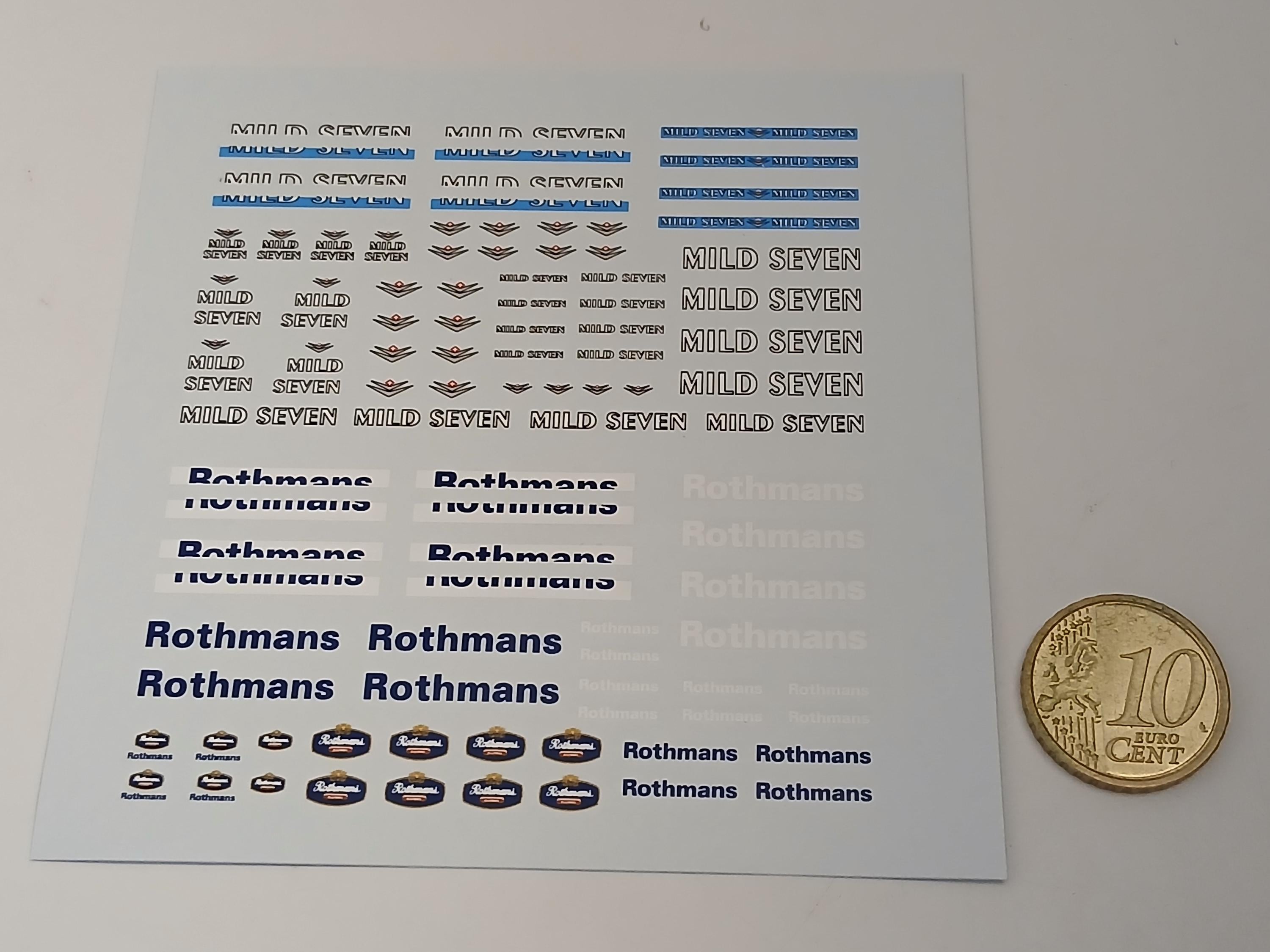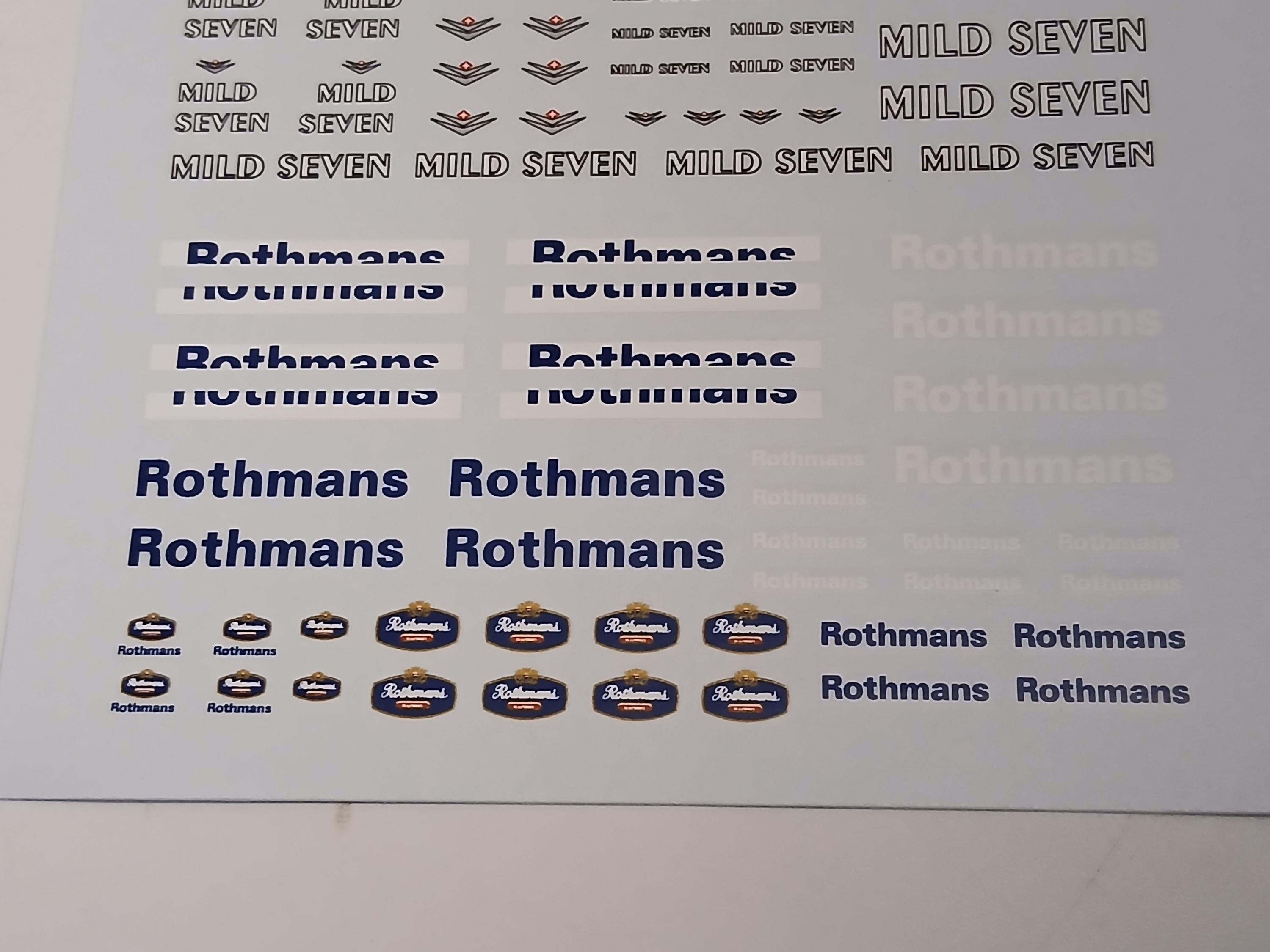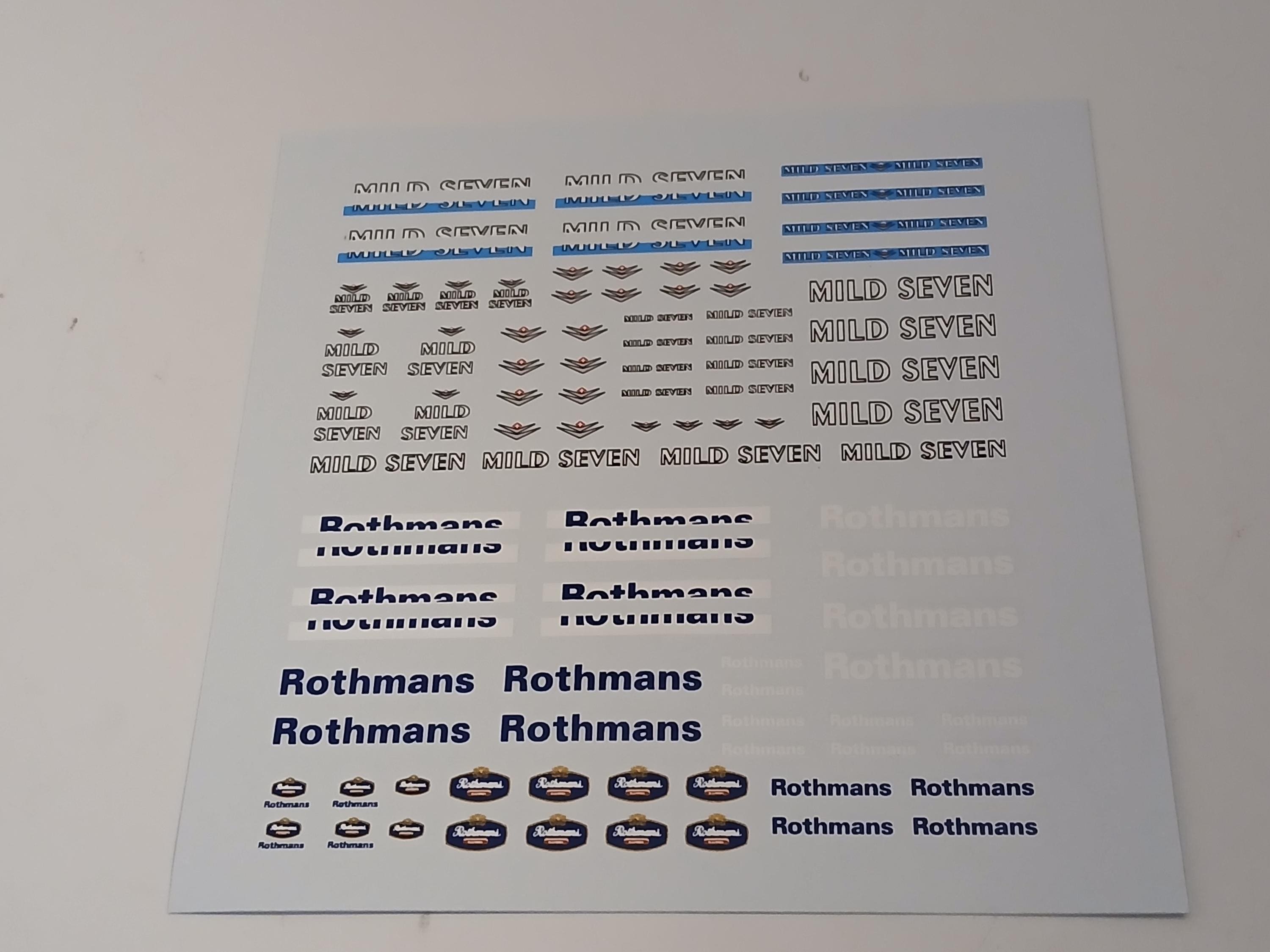 An outstanding 1:43 scale waterslide decals sheet producedby BBR Models, catalogue DEC08. Professionally serigraphed. Fits 1:43 models, such as Benetton and Williams Formula 1 cars of the 90s. Various shapes and sizes, a great item for any modeller. Perfect conditions.