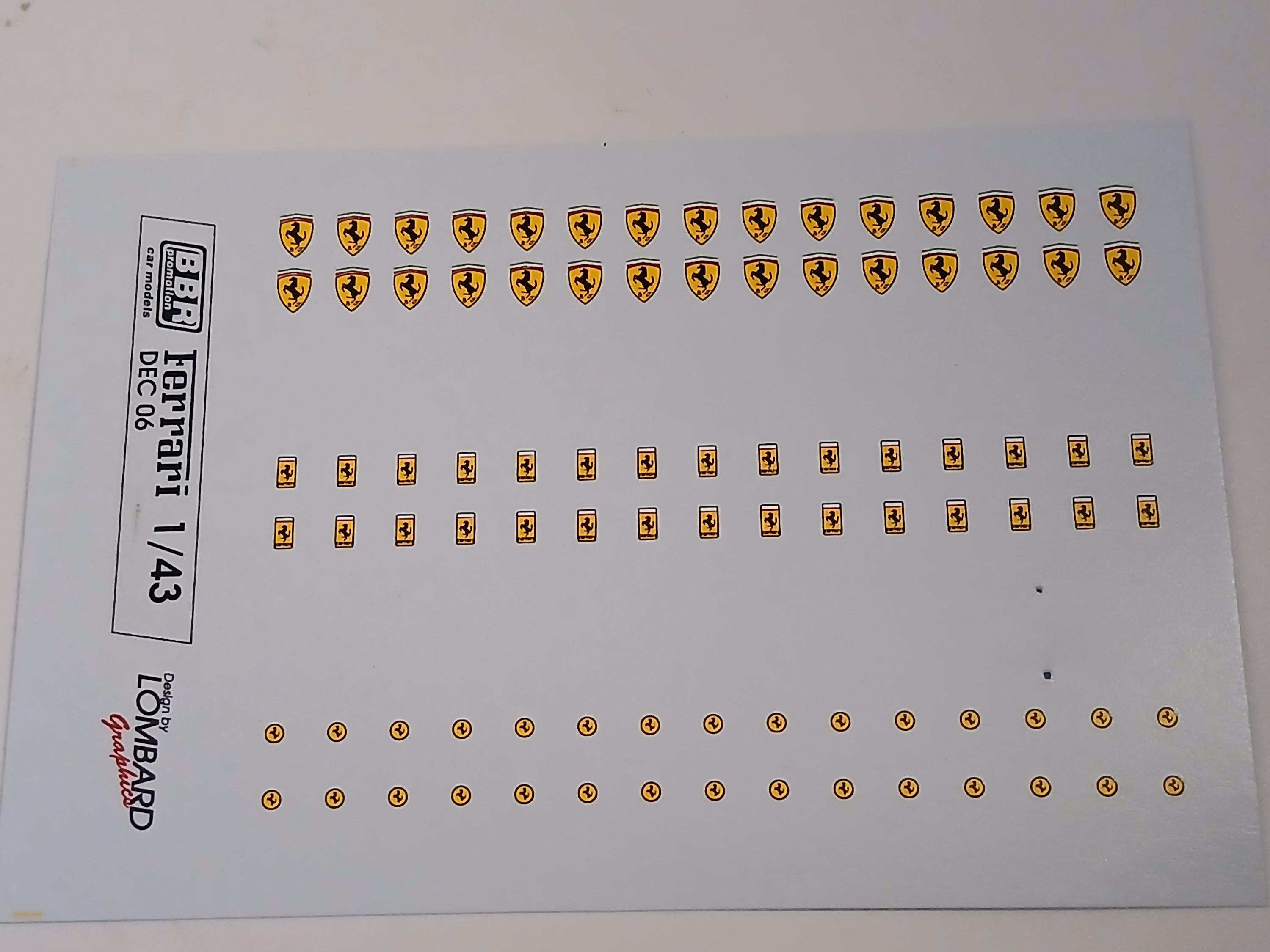 An outstanding 1:43 scale waterslide decals sheet produced by BBR Models, catalogue DEC006. Professionally serigraphed. Perfect conditions.