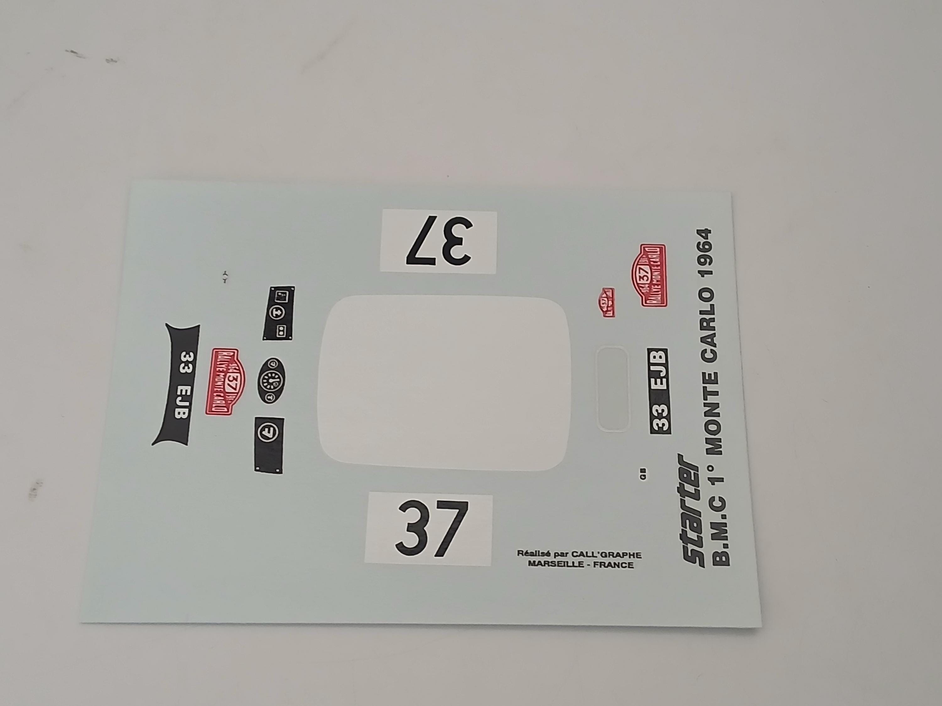 1:43 decals sheet for BMC Mini Cooper Rally Monte Carlo 1964 winner #37 Starter production