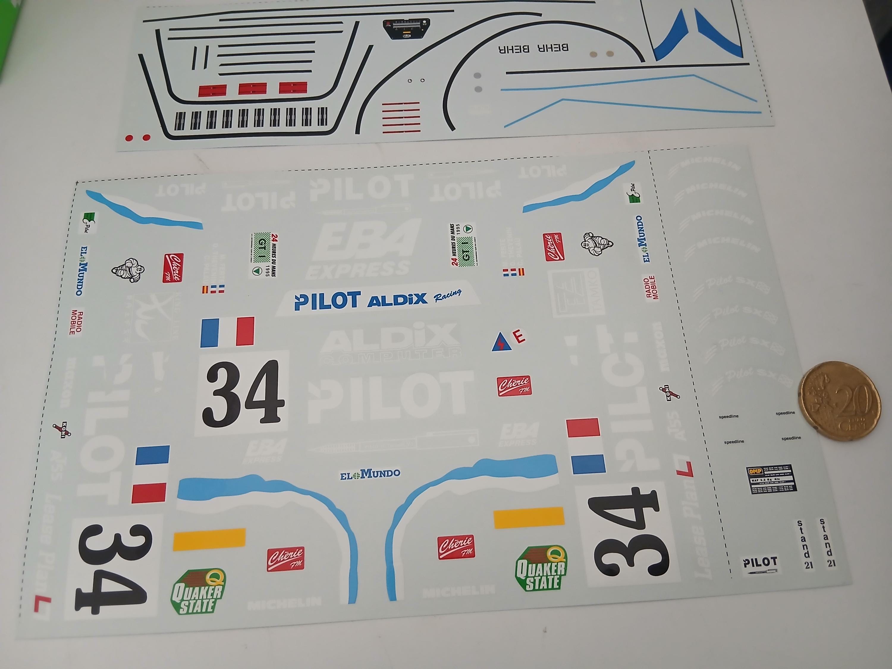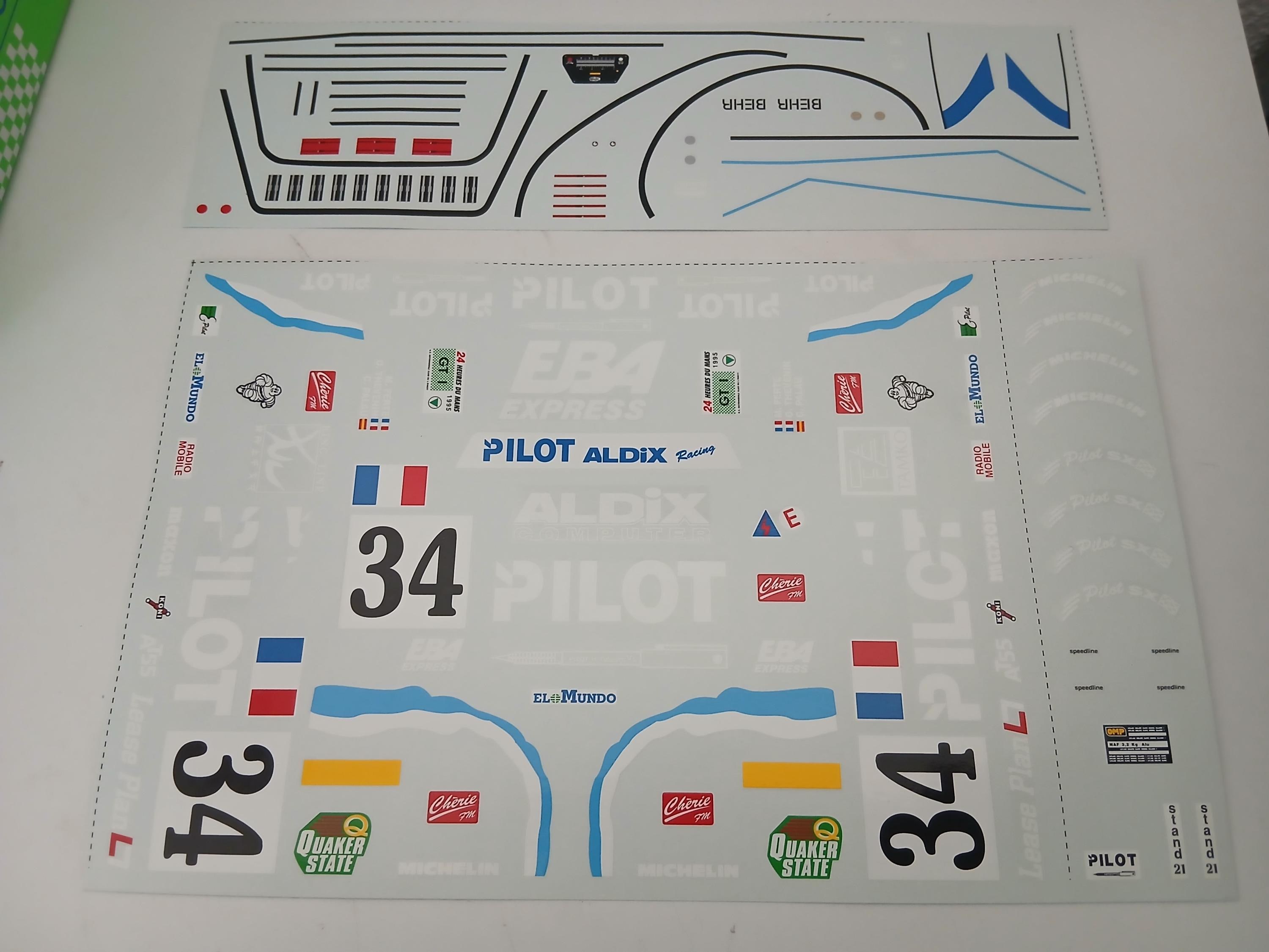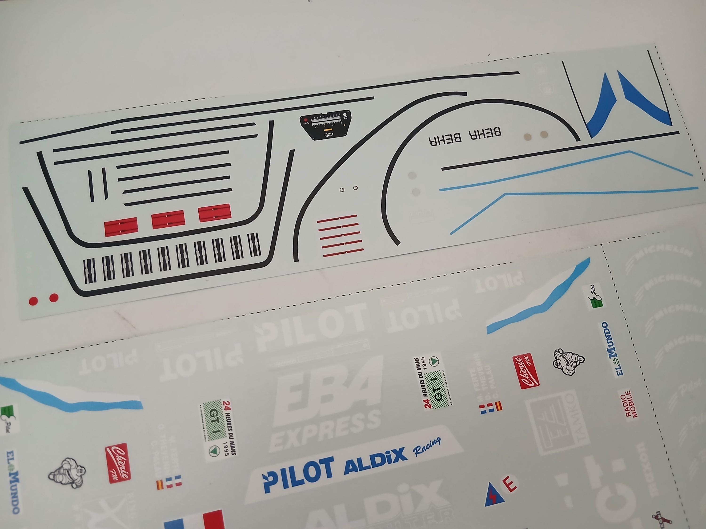 First quality waterslide and serigraphed decals sheets (1:18 scale) for the Ferrari F40 entered in the Le Mans 24 Hours 1995 and driven by Ferté/Thévenin/Palau.