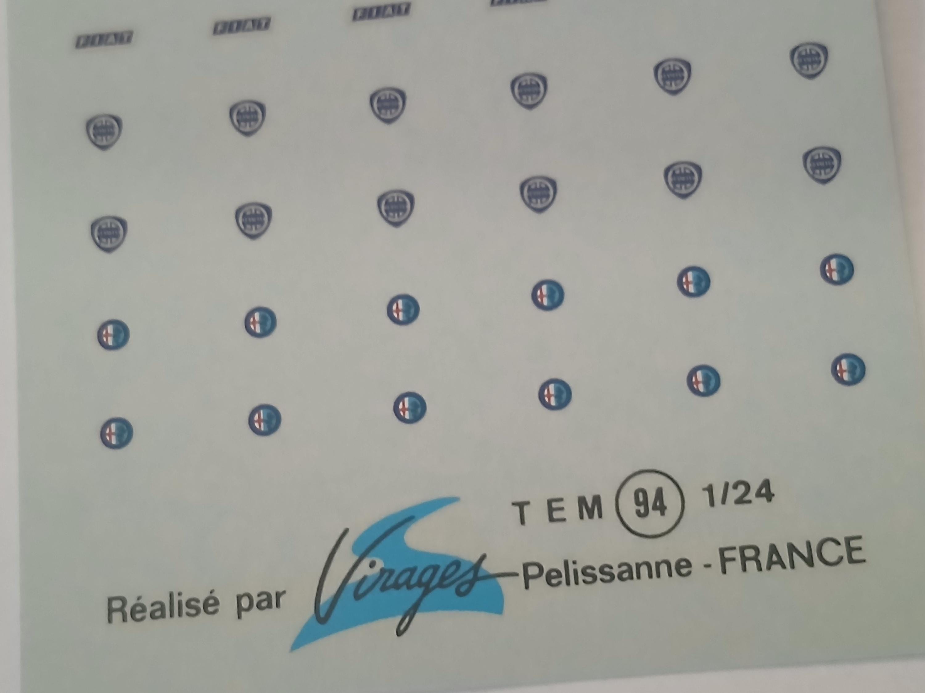 Waterslide decals, serigraphed. Perfect conditions, first quality production. Front emblems for FIAT, Alfa Romeo and Lancia model cars.