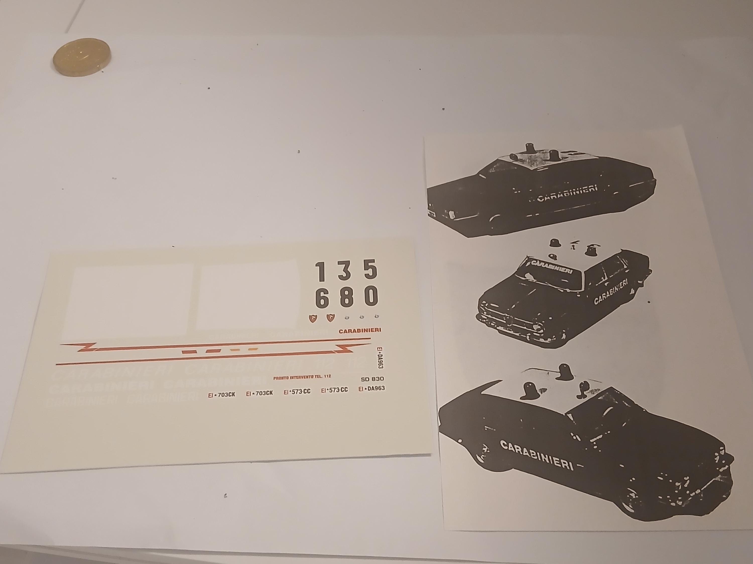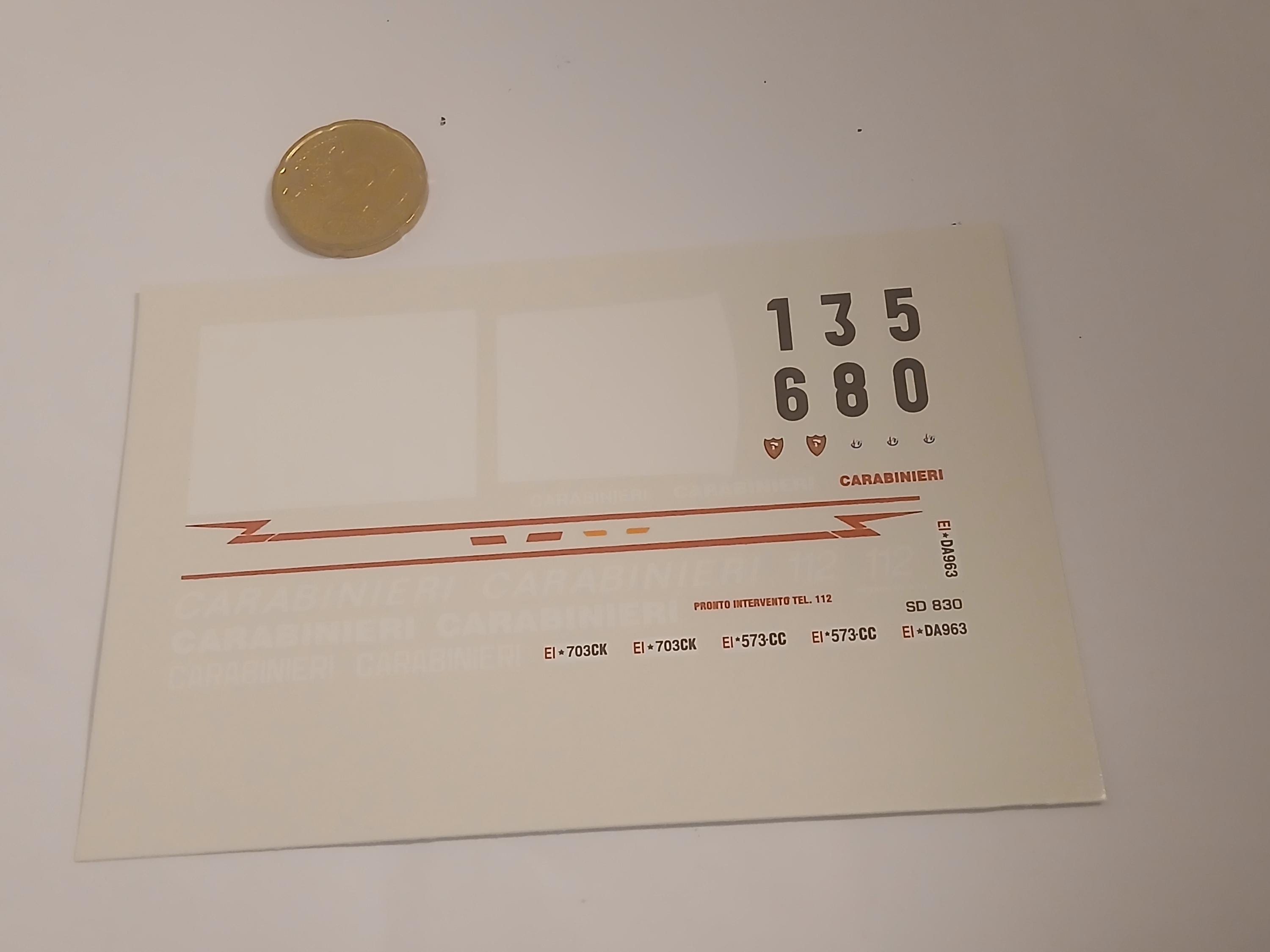 1:43 waterslide decals sheet for Alfa Romeo Giulia / Alfetta / 90 Carabinieri (Italy) Tron DE29