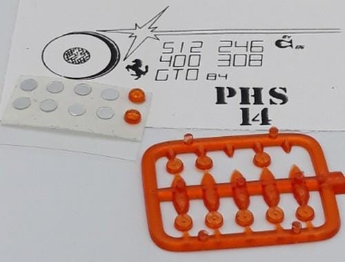 Set of 10 plastic lights (rear, round), for Ferrari 512BB, Dino 246, 400, 288GTO, 308 and so on. Plastic part with chromed base. Really nice.