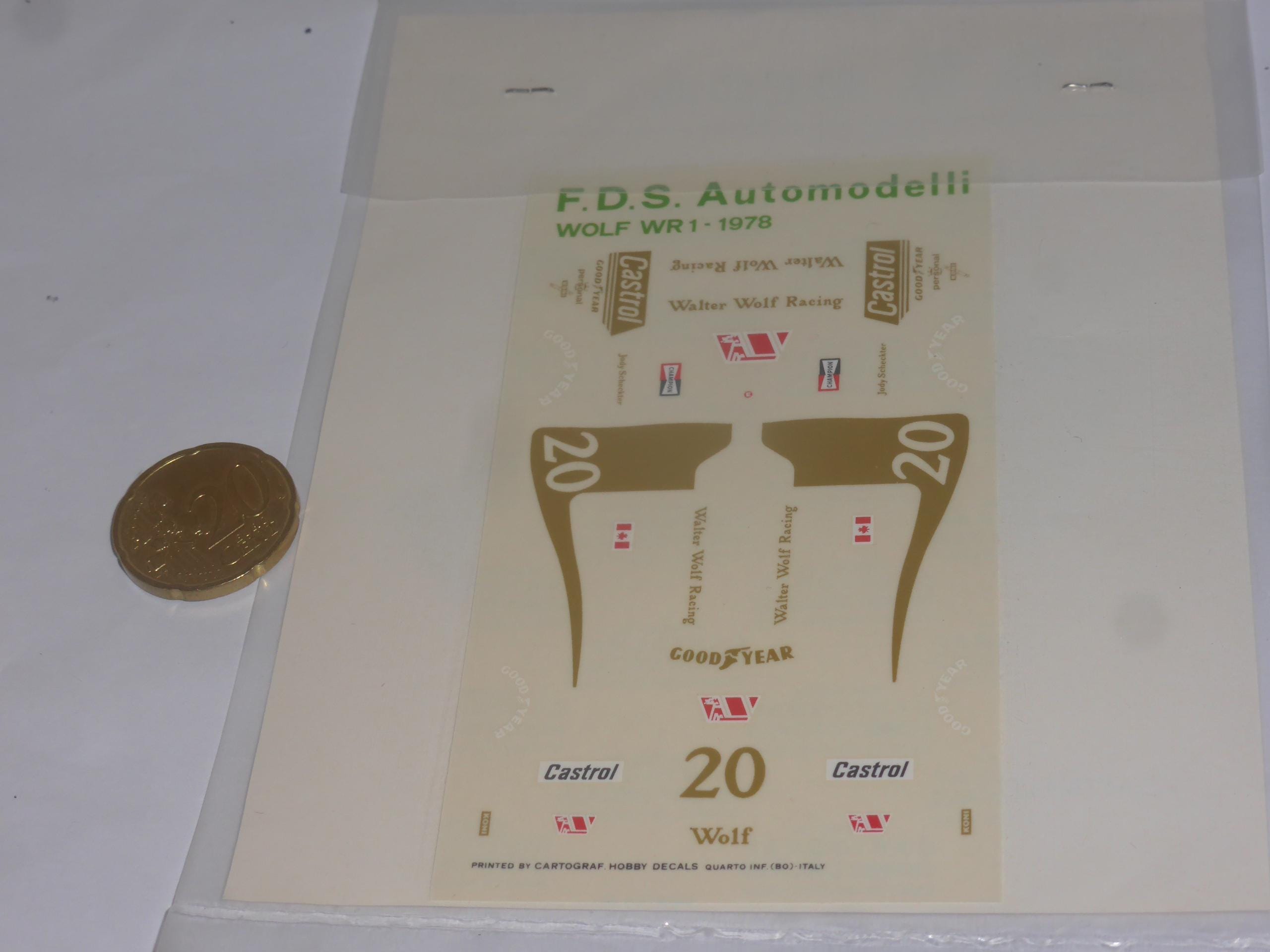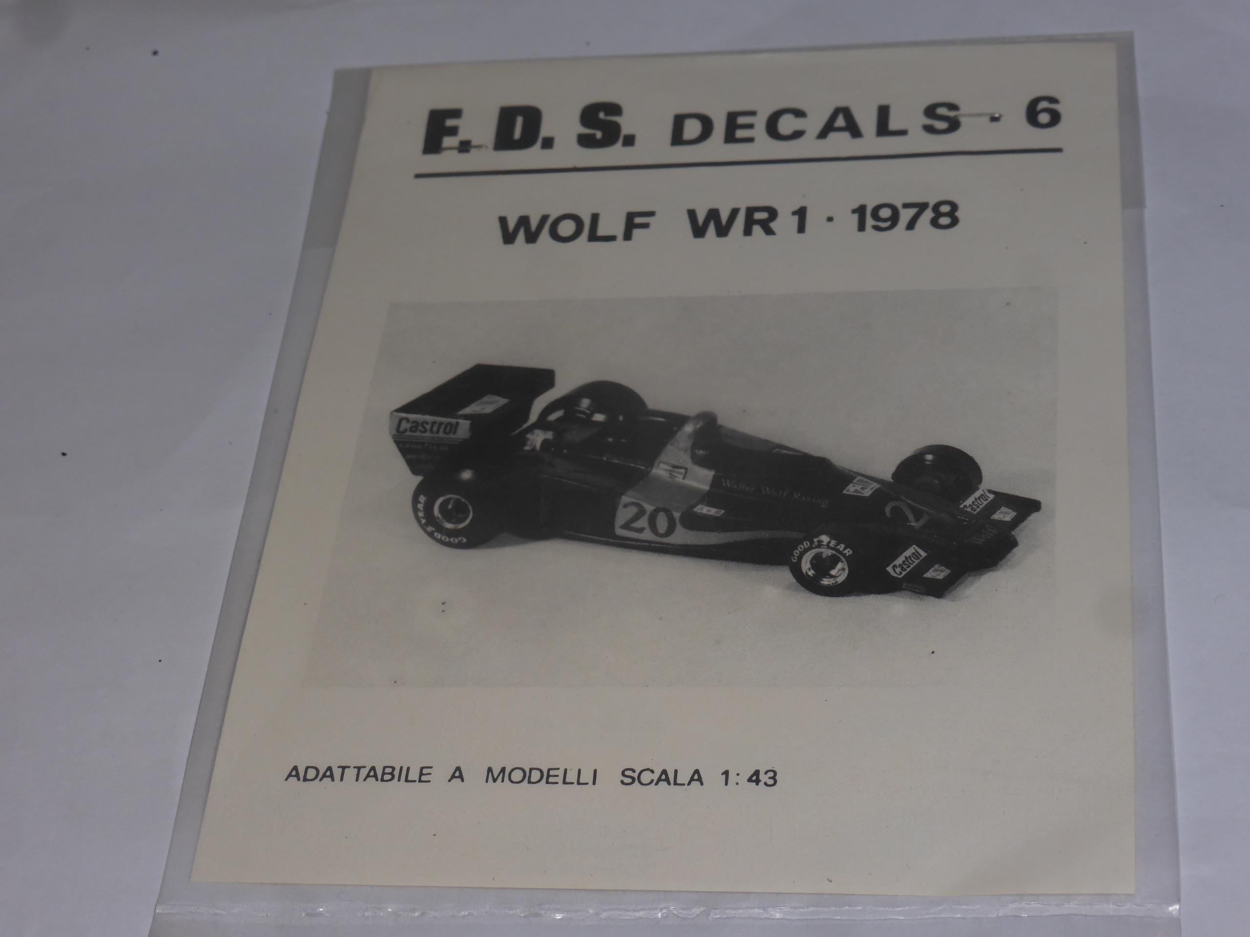 1:43 waterslide decals sheet for Wolf Ford Cosworth WR1 F.1 1978 Jody Scheckter Cartograf production