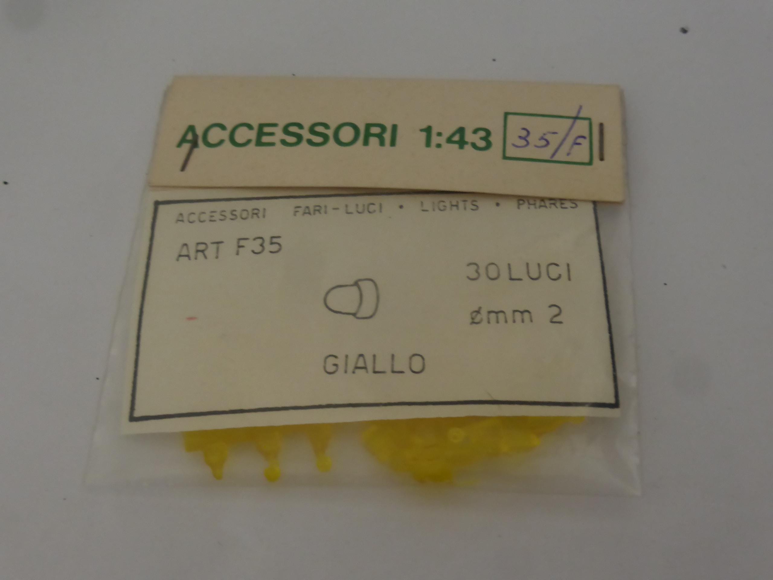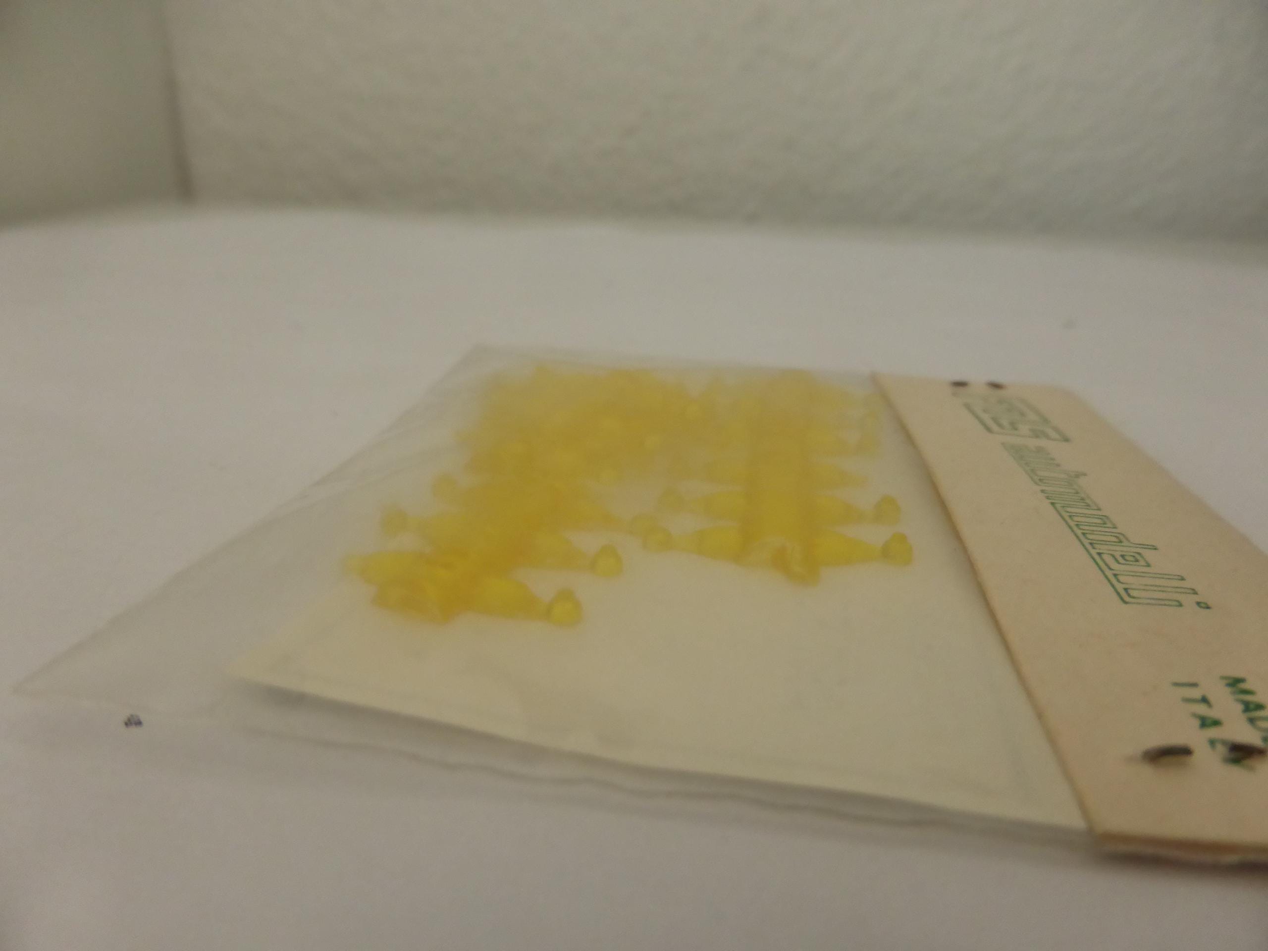 mm 2.00 yellow plastic lights, FDS production, catalogue number 35/F. Still sealed. See drawing for exact shape.