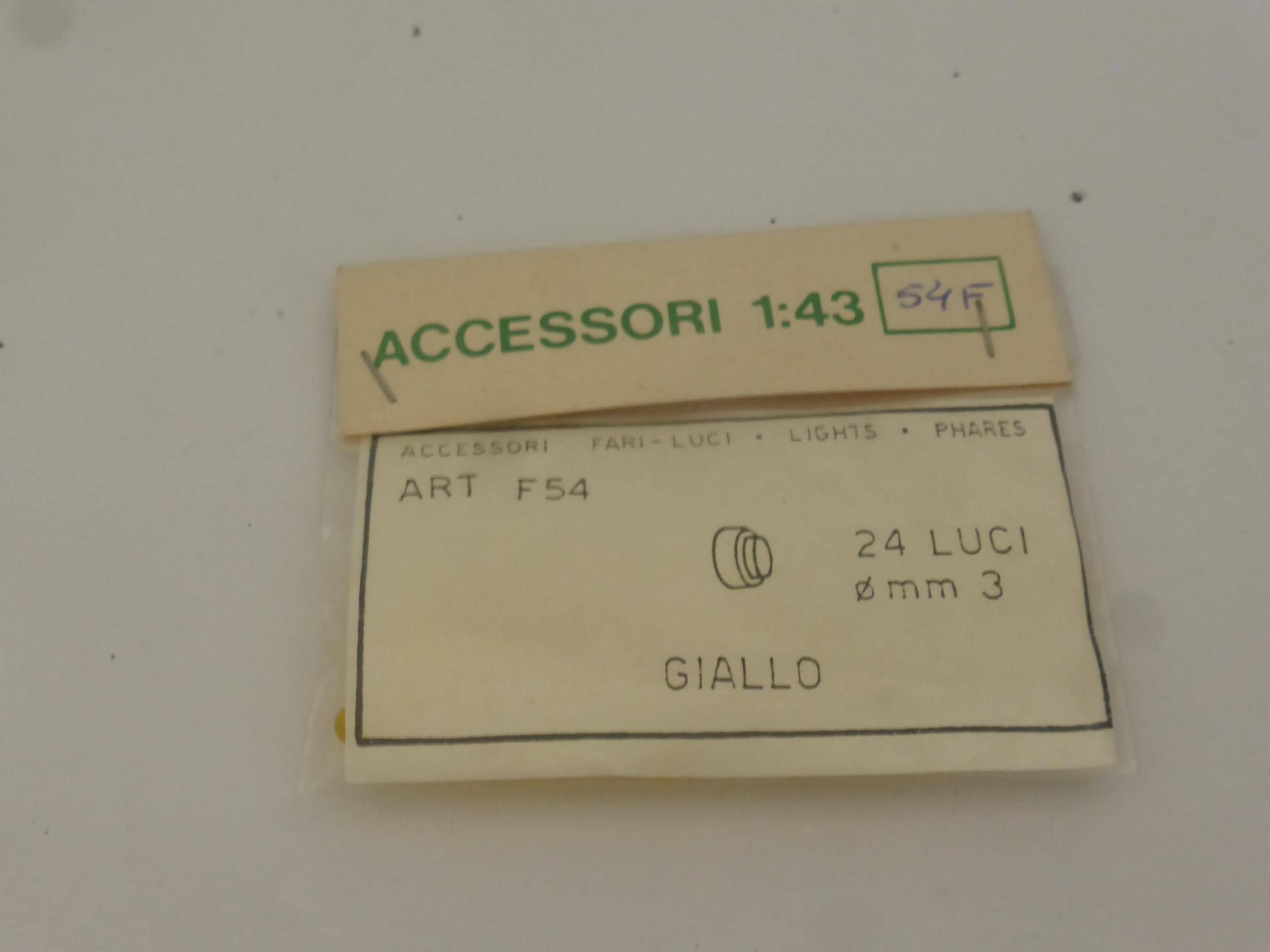 mm 3.00 yellow plastic lights (pack of 24 pieces), FDS production, catalogue number 54/F. Still sealed. See drawing for exact shape.