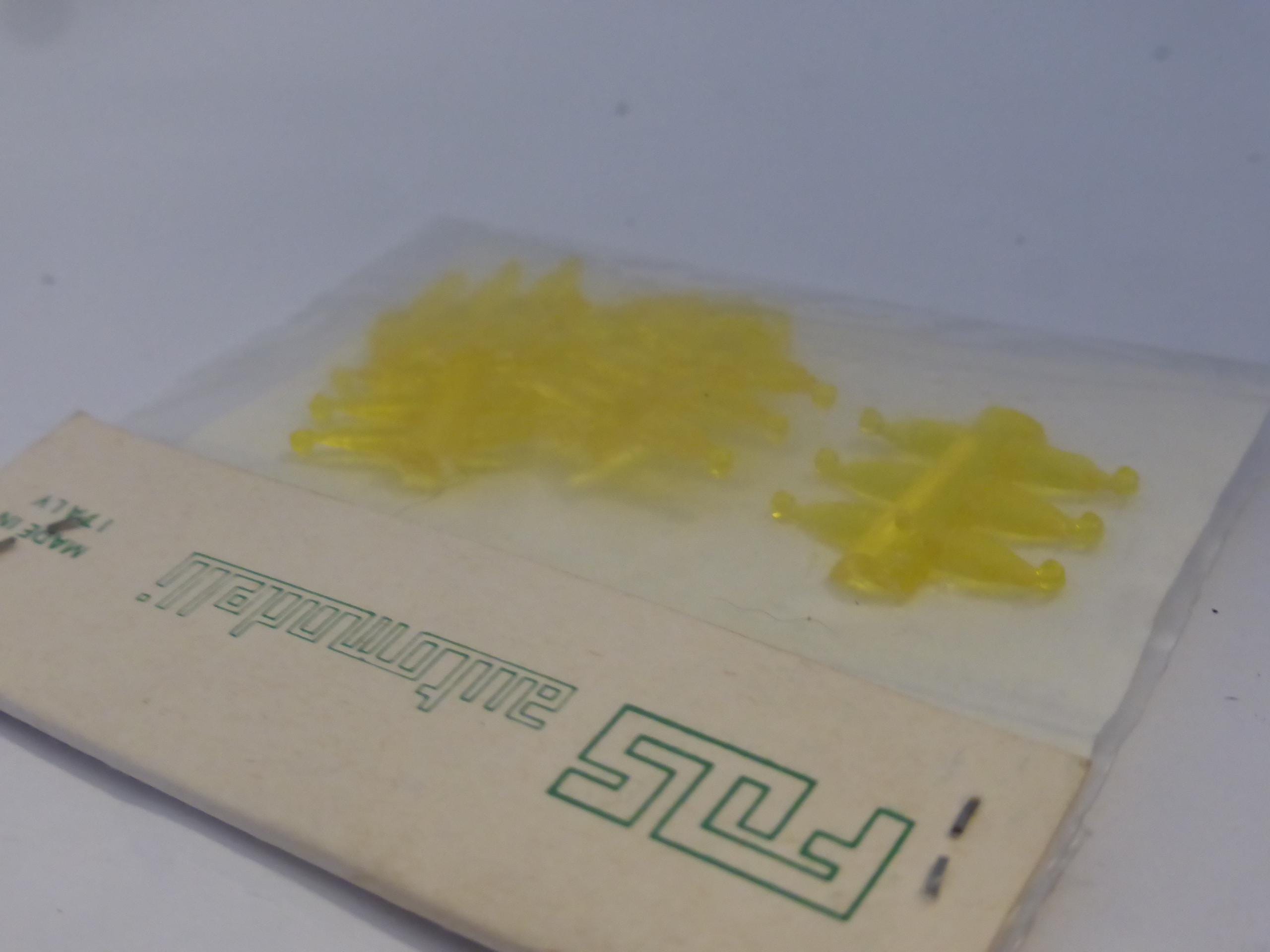 mm 1.5 YELLOW transparent plastic round lights, FDS production, catalogue number 31/F. Still sealed. See drawing for exact shape.