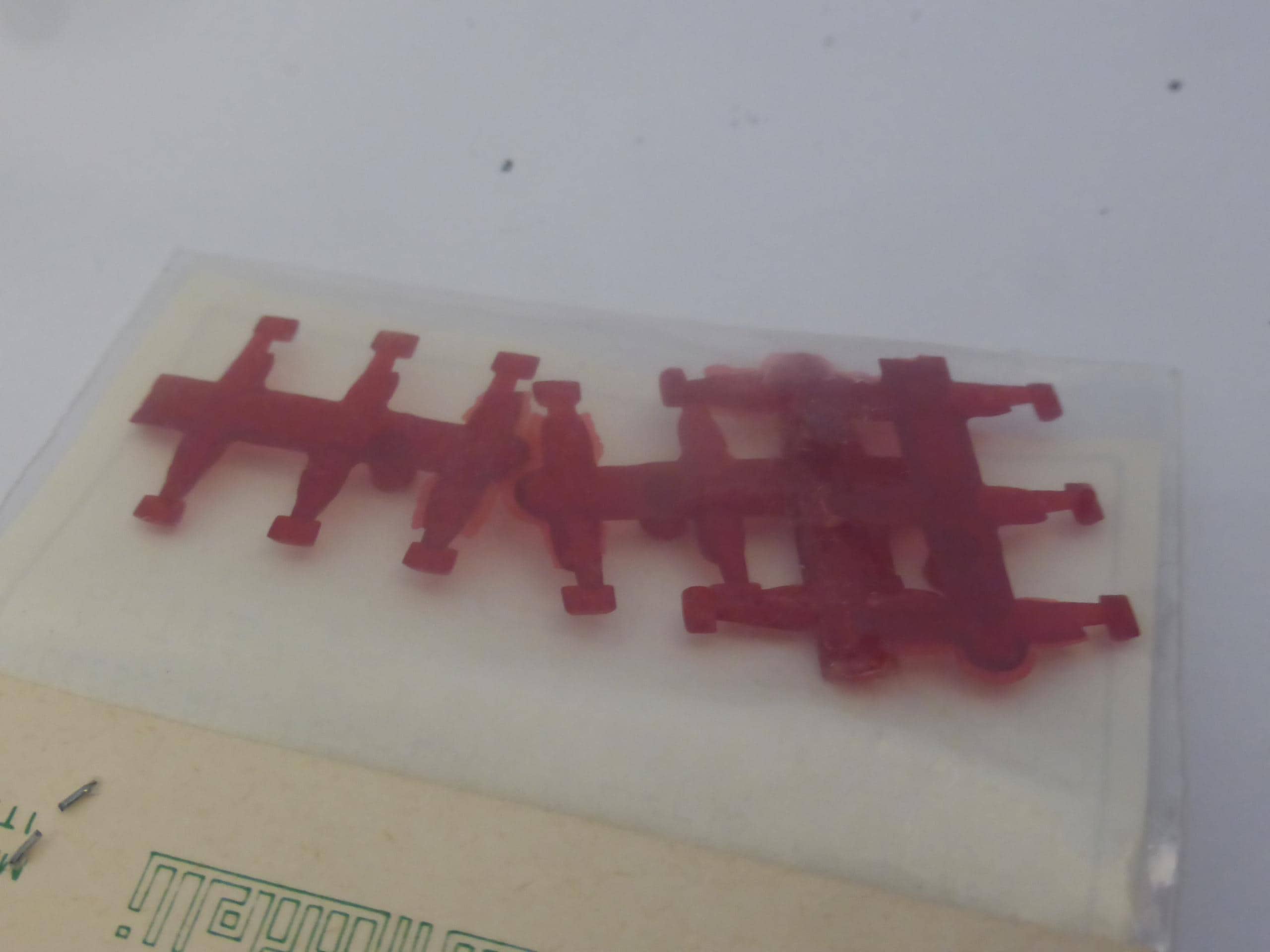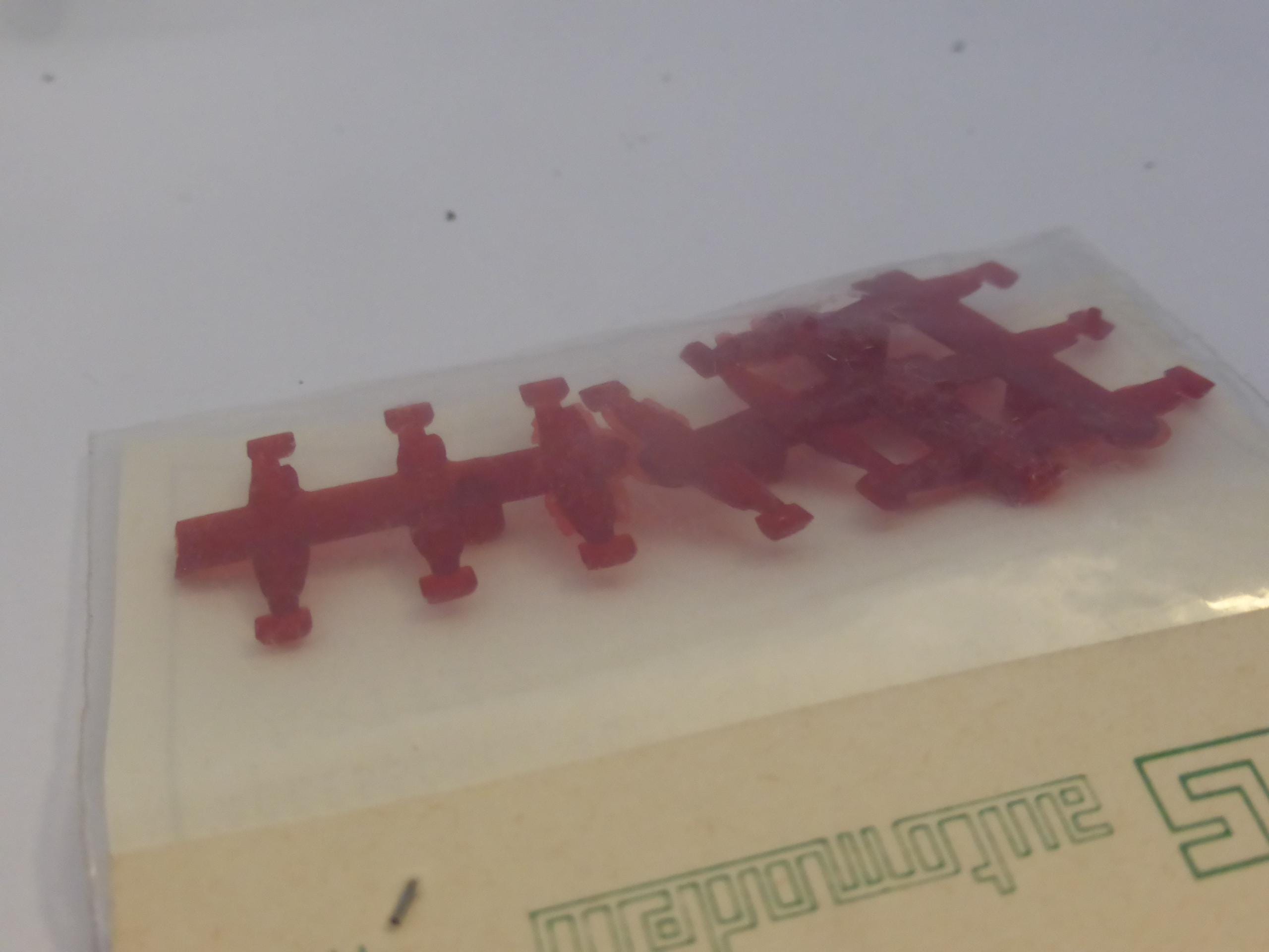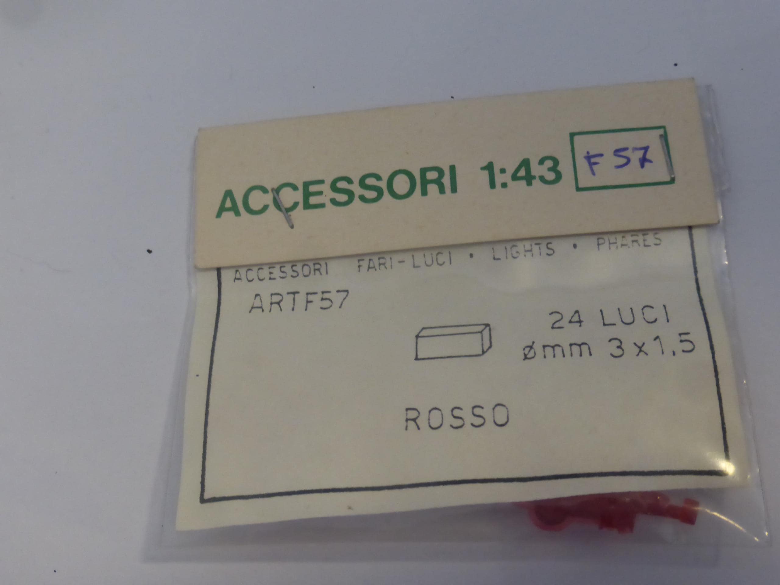 Red transparent plastic lights, rectangular (mm 3x1.5), FDS production, catalogue number 57/F. Still sealed. See drawing for exact shape.