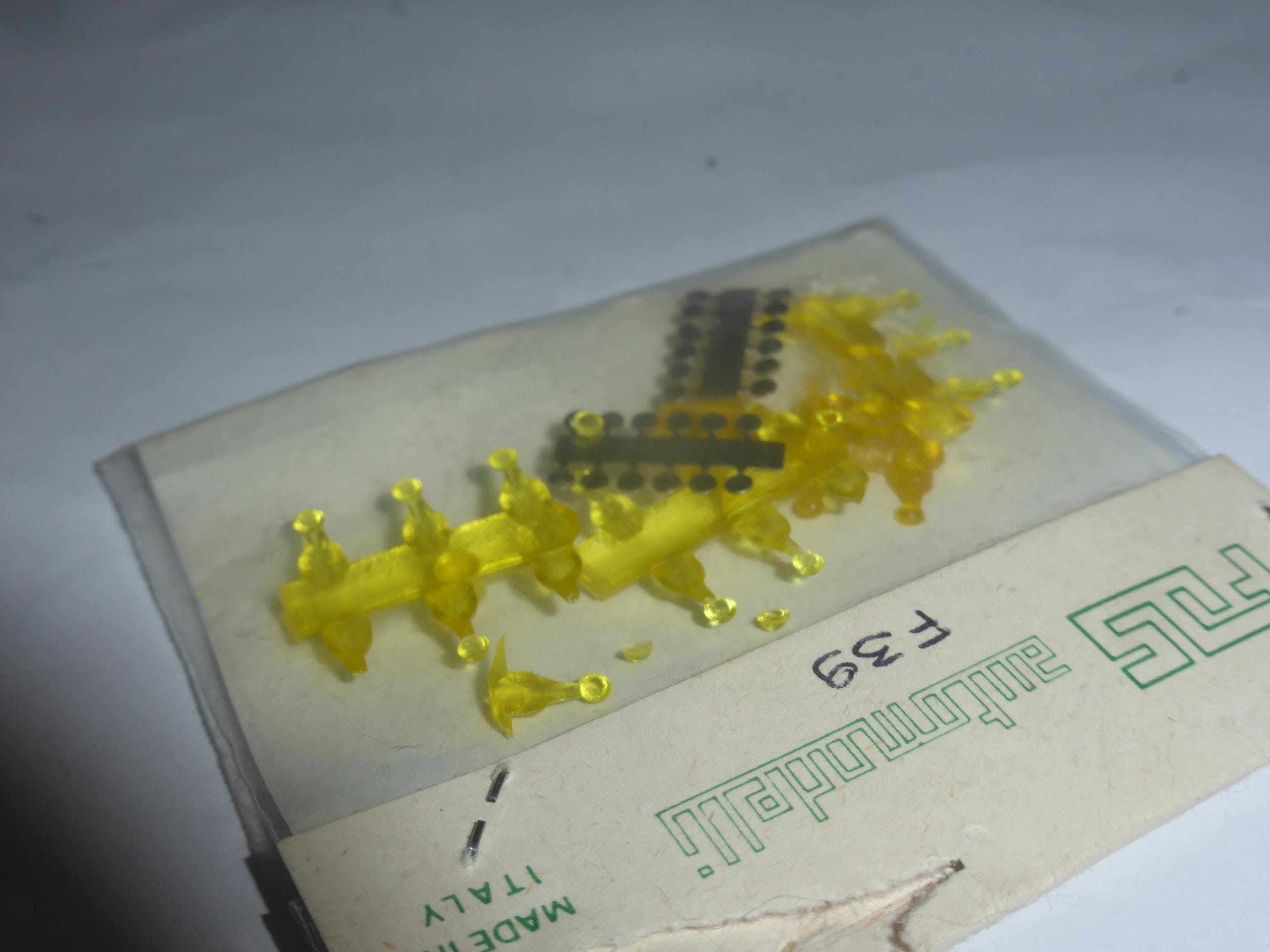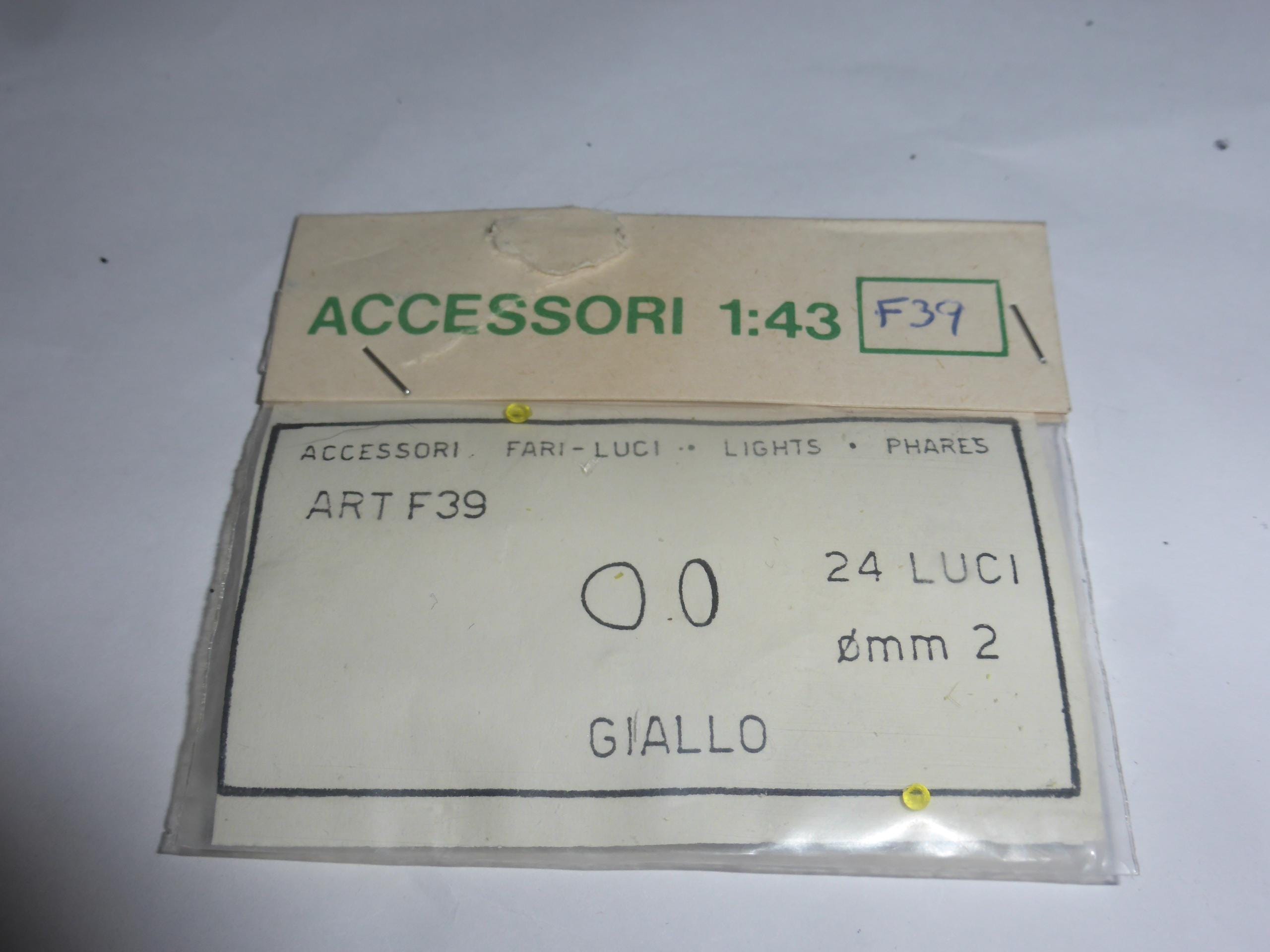 mm 2.0 YELLOW transparent plastic round lights with photoetched base, FDS production, catalogue number 39/F. Still sealed. See drawing for exact shape of the light.