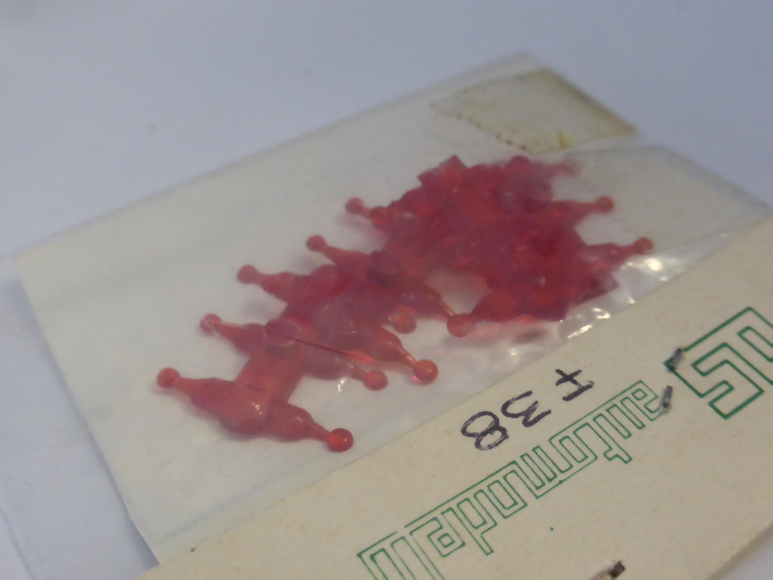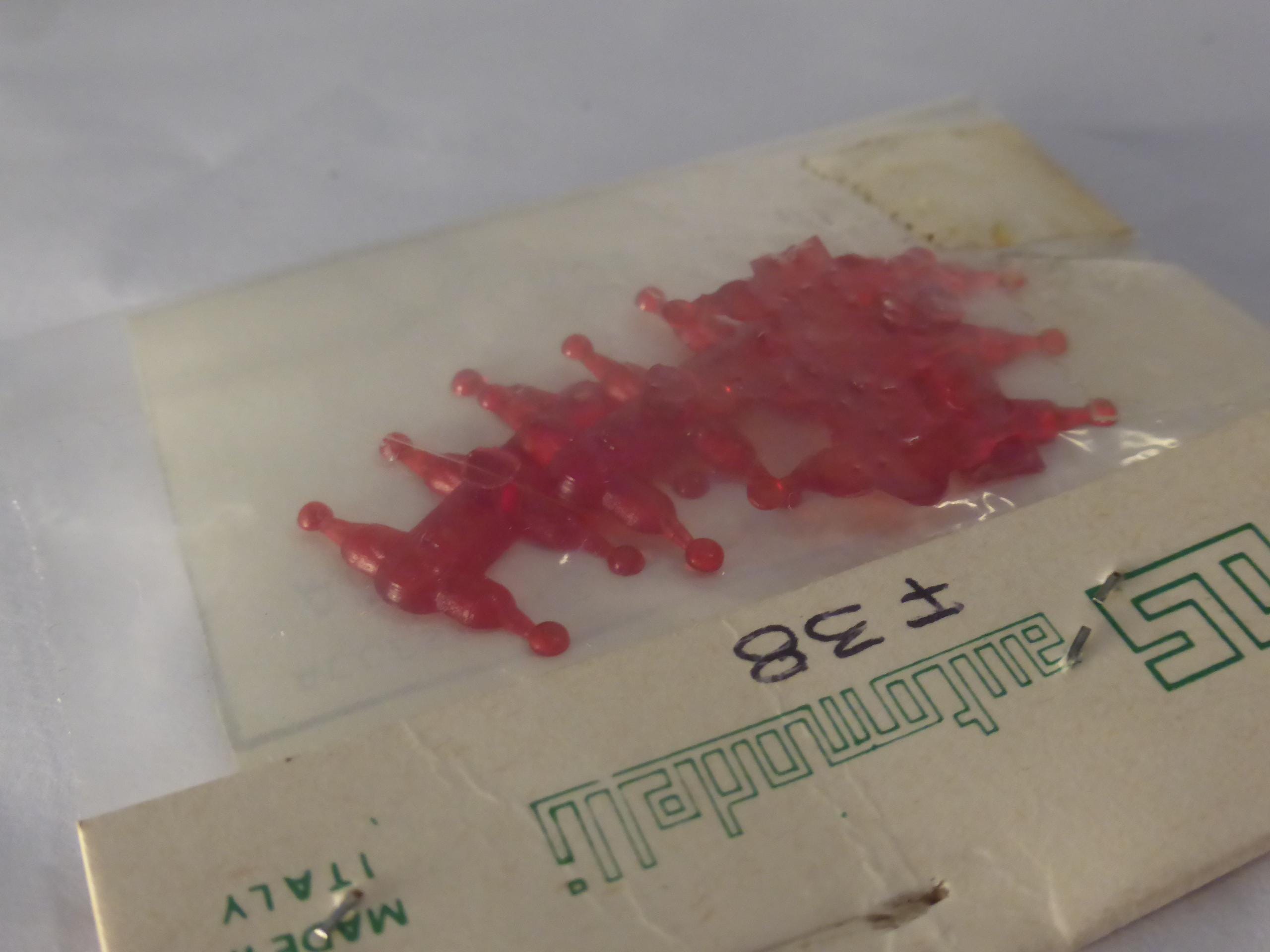 mm 2.0 RED transparent plastic round lights, FDS production, catalogue number 38/F. Still sealed. See drawing for exact shape of the light.
