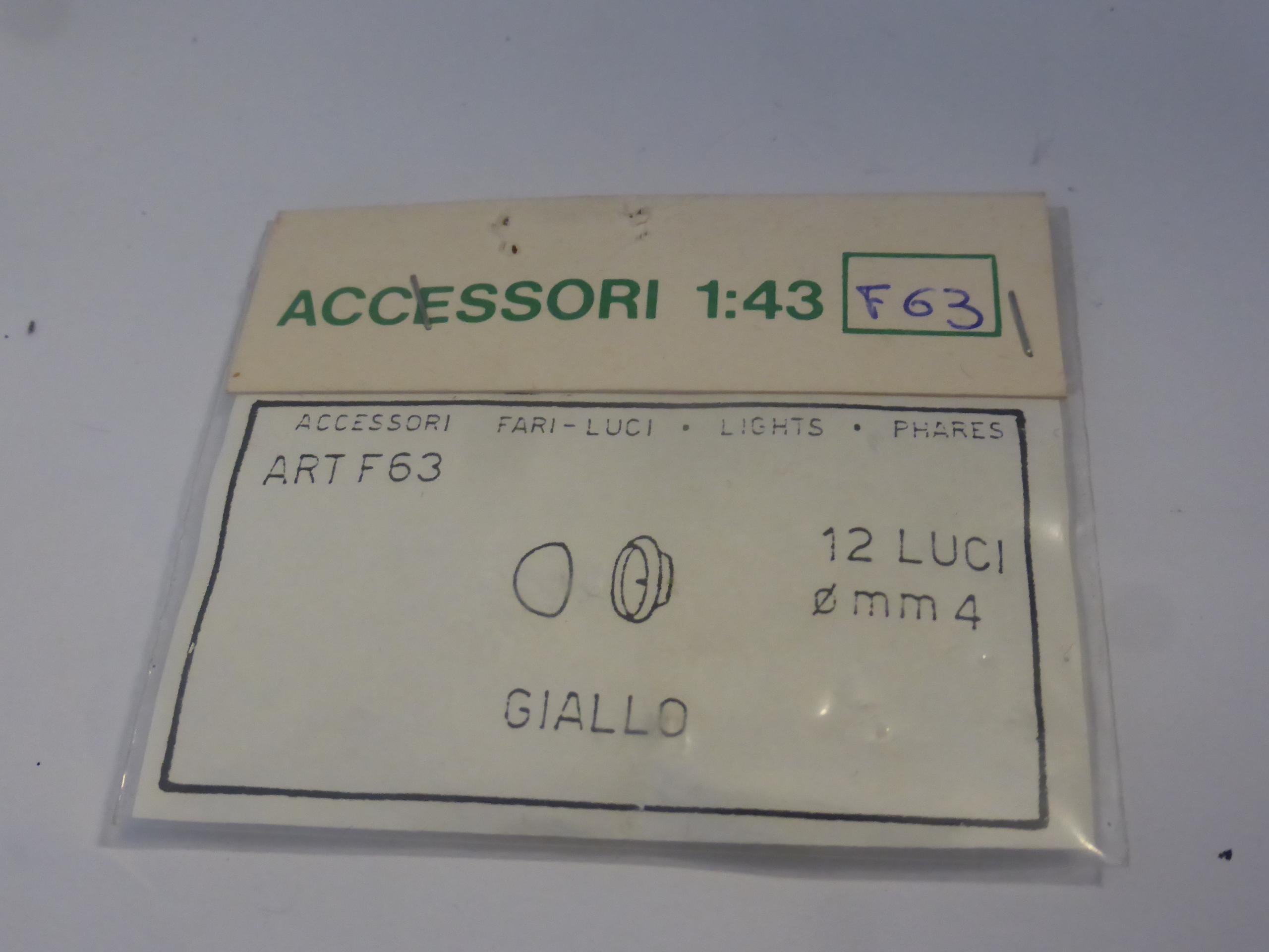 mm 4.0 YELLOW transparent plastic round lights with chromed plastic dish, FDS production, catalogue number 63/F. Still sealed. See drawing for exact shape of the light.
