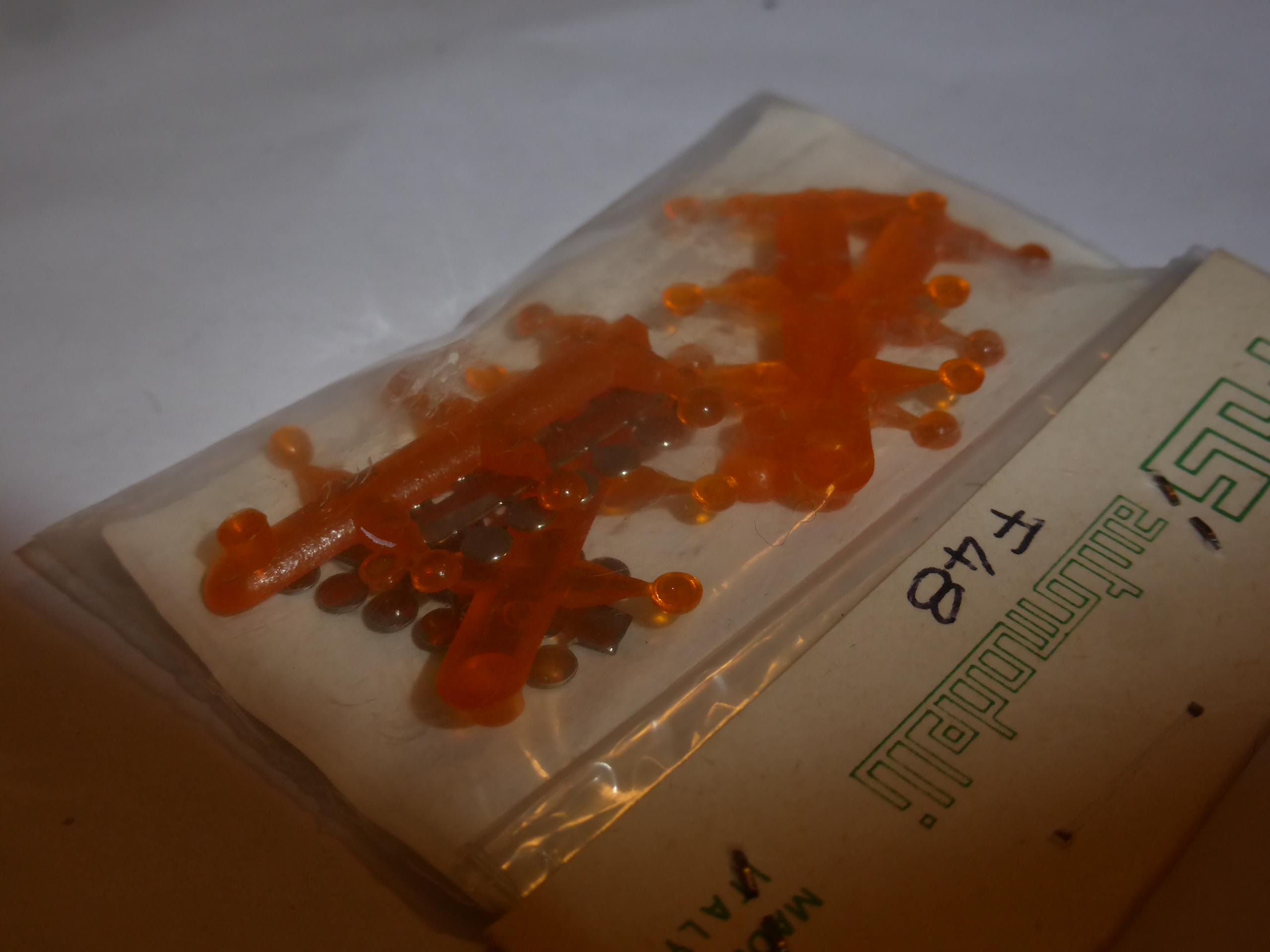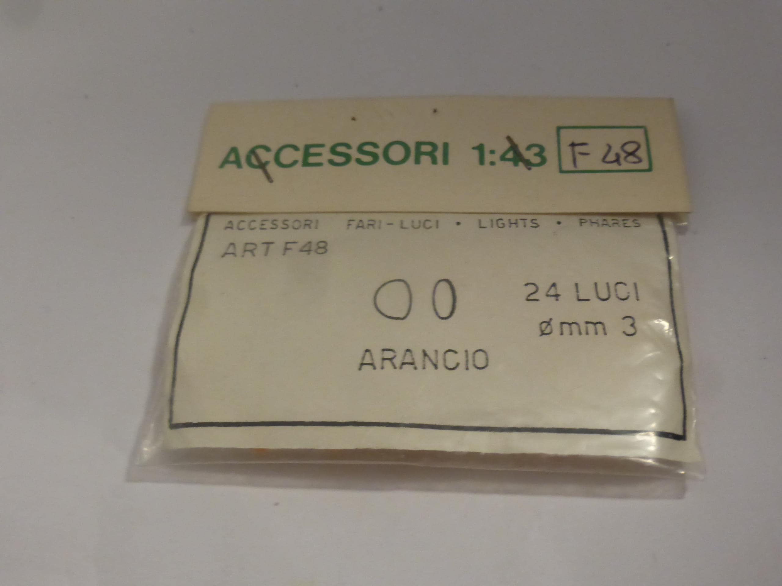 mm 3.0 ORANGE transparent plastic round lights with photoetched round base, FDS production, catalogue number 48/F. Still sealed. See drawing for exact shape of the light.