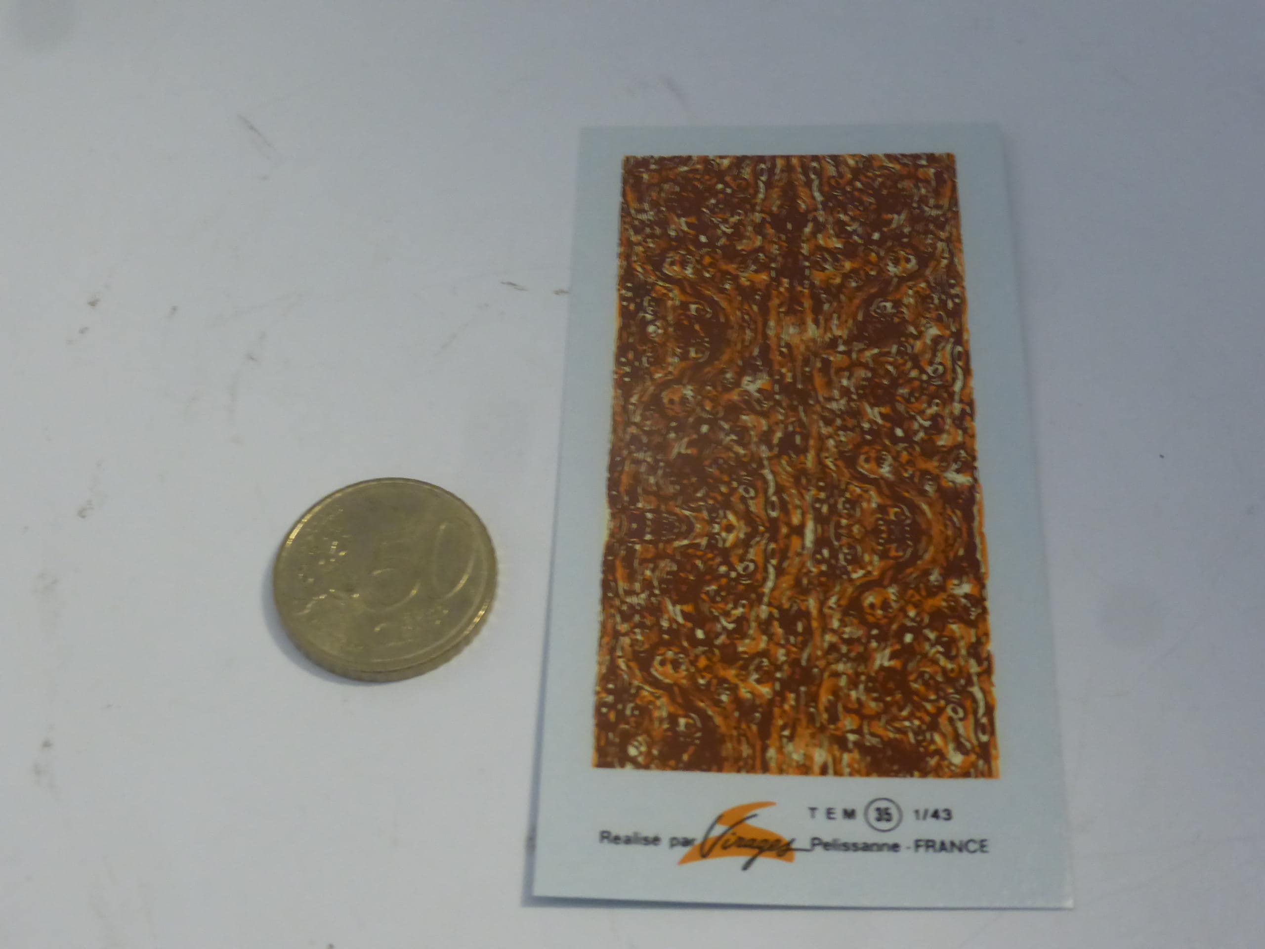 1:43 decals sheet gloss wood effect (printed surface cm 8.34x4.15), very useful for dashboard, interior trims and so on.