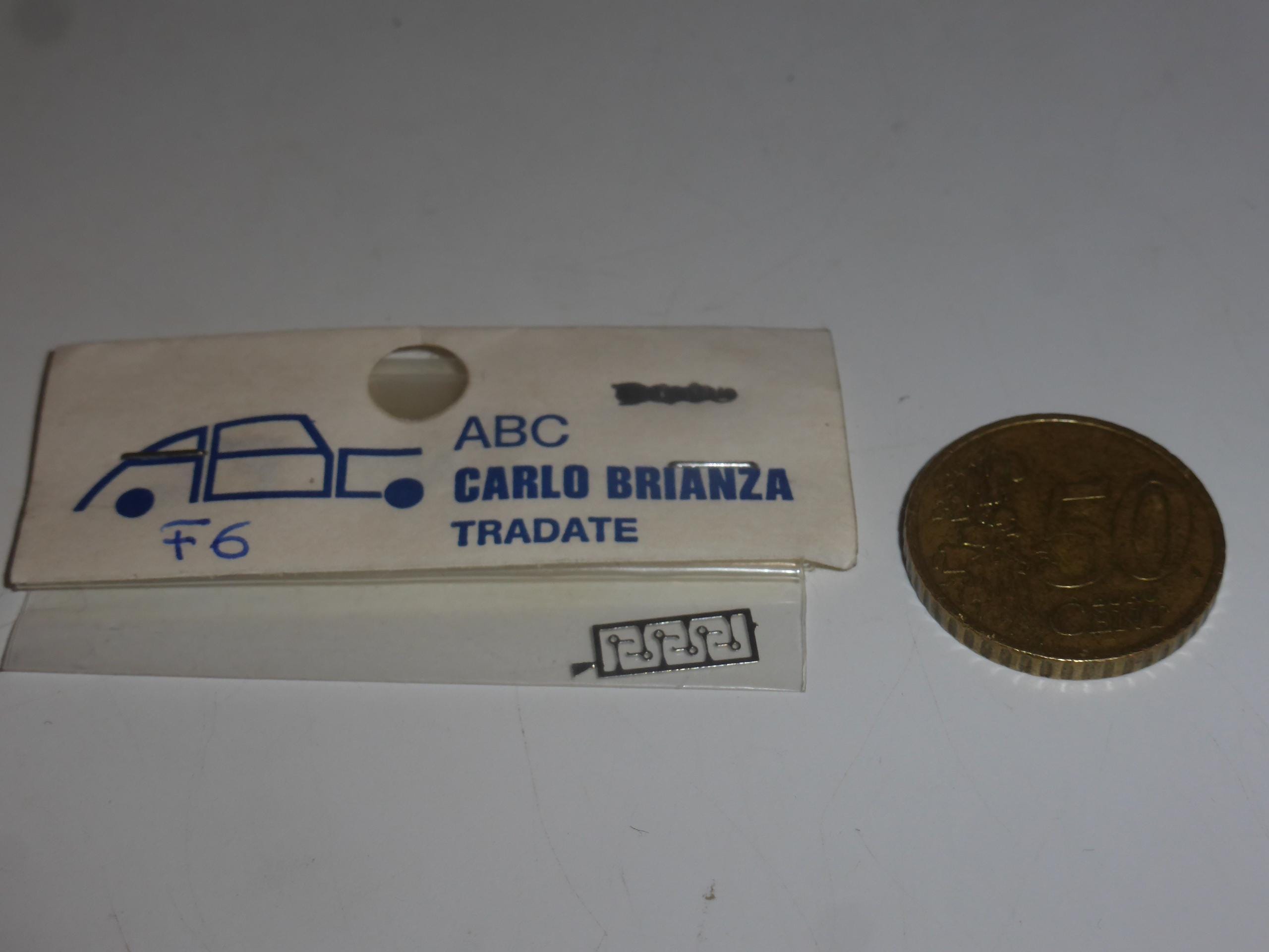 Pack of 6 photo-etched bonnet hinges for Ferrari 250 GTO and other cars, highly detailed spare parts for 1:43 scale models. Produced by ABC (Carlo Brianza), catalogue number F-6, now long sold out. Rare and interesting item.