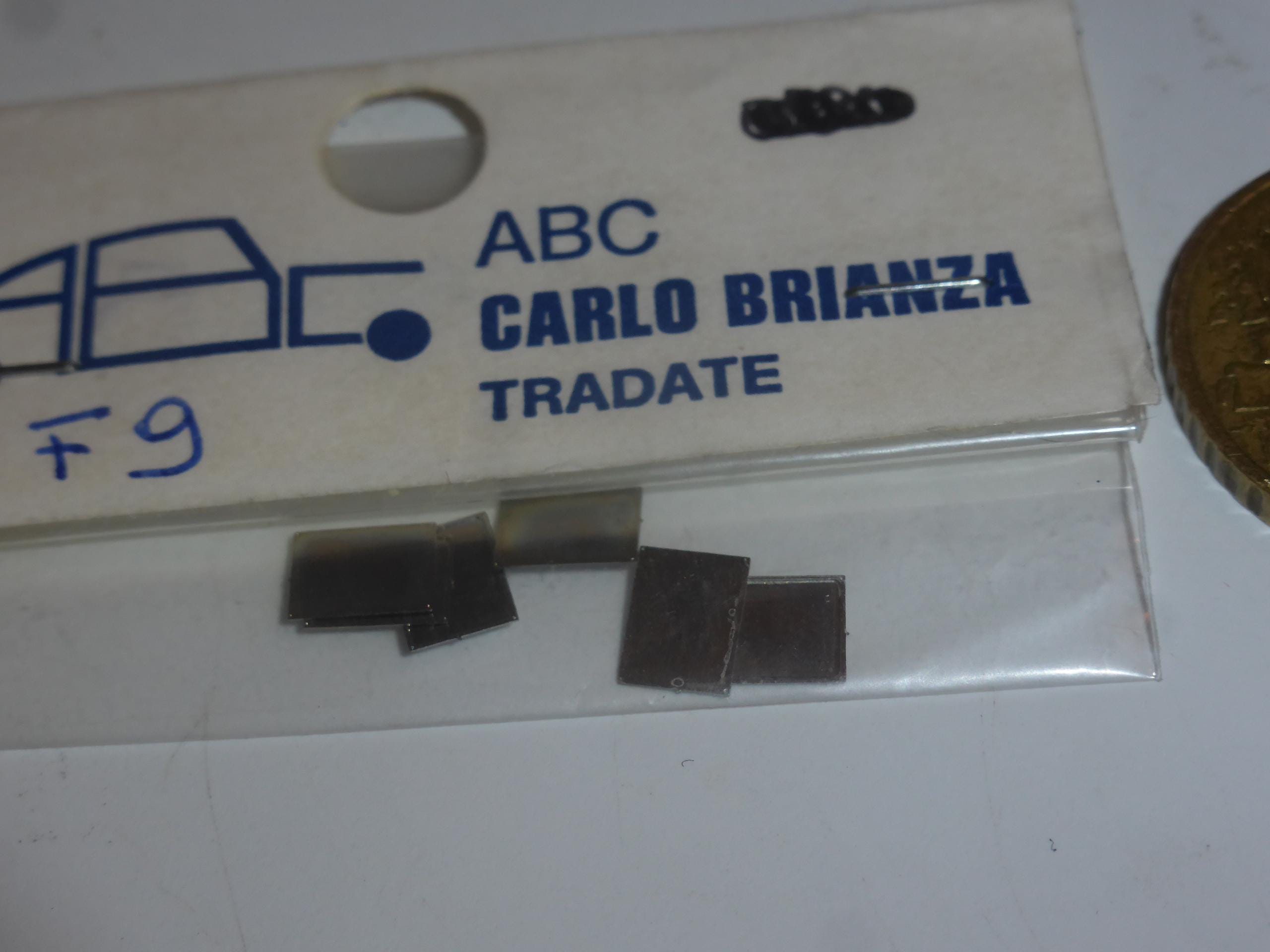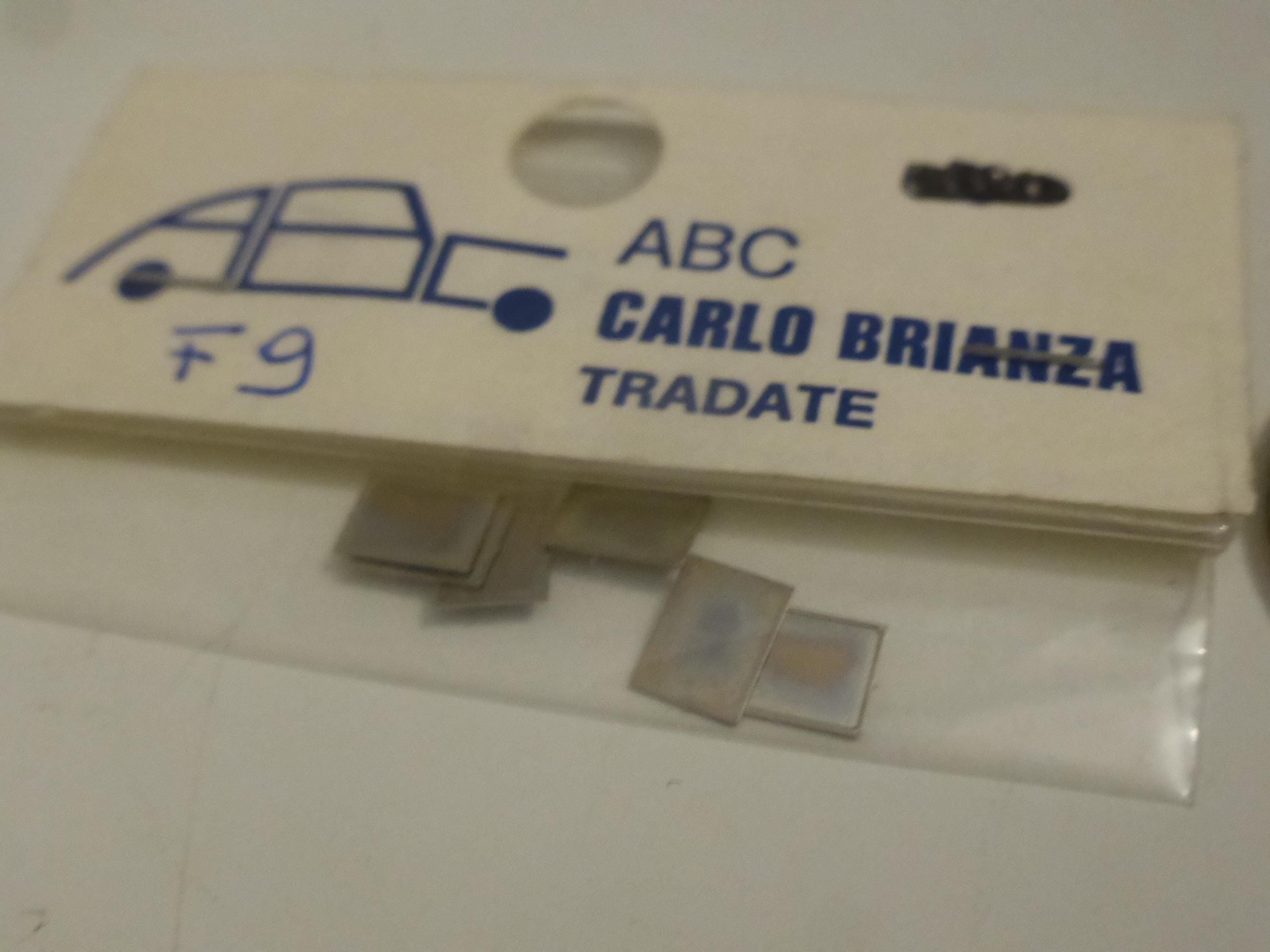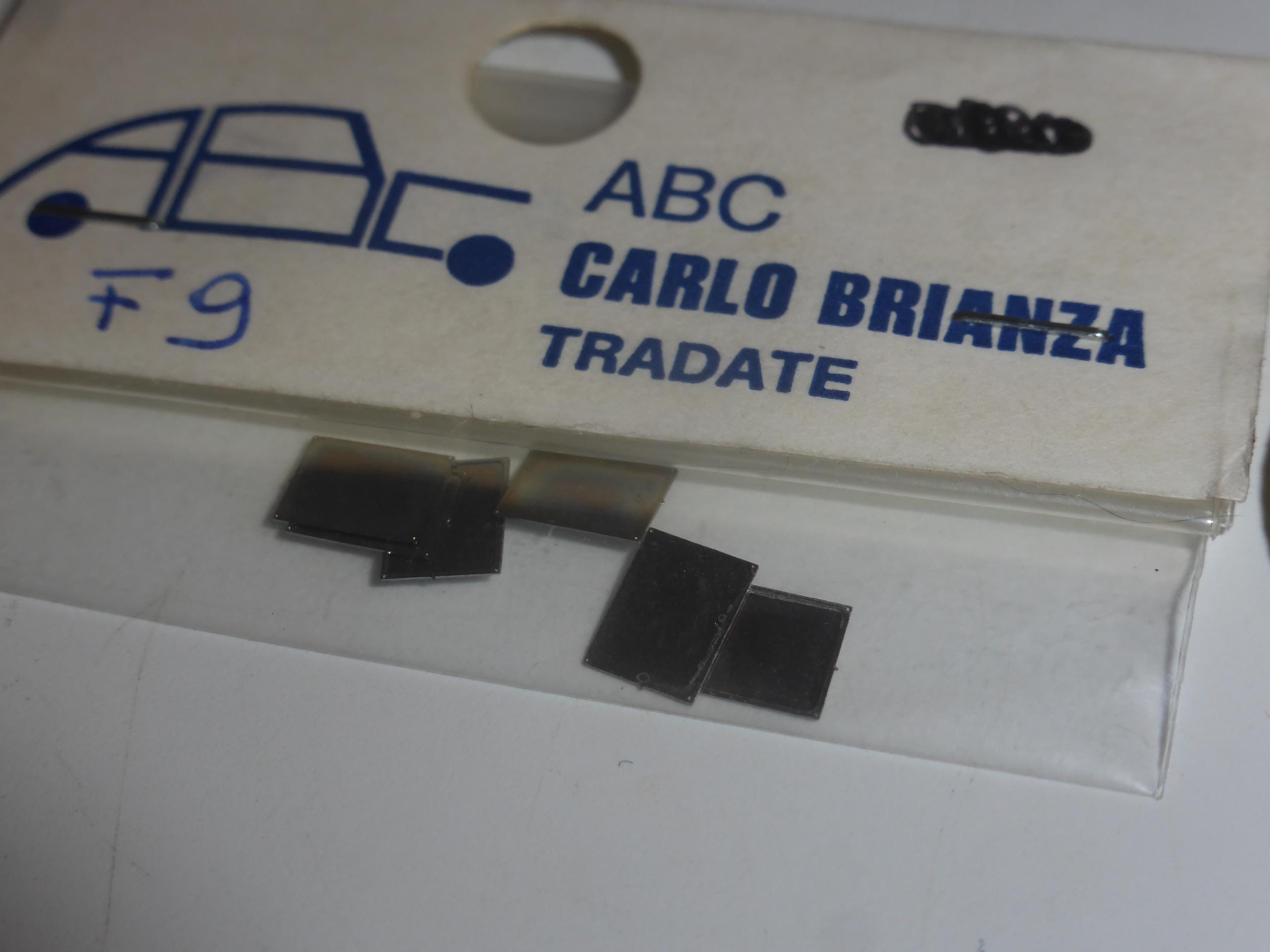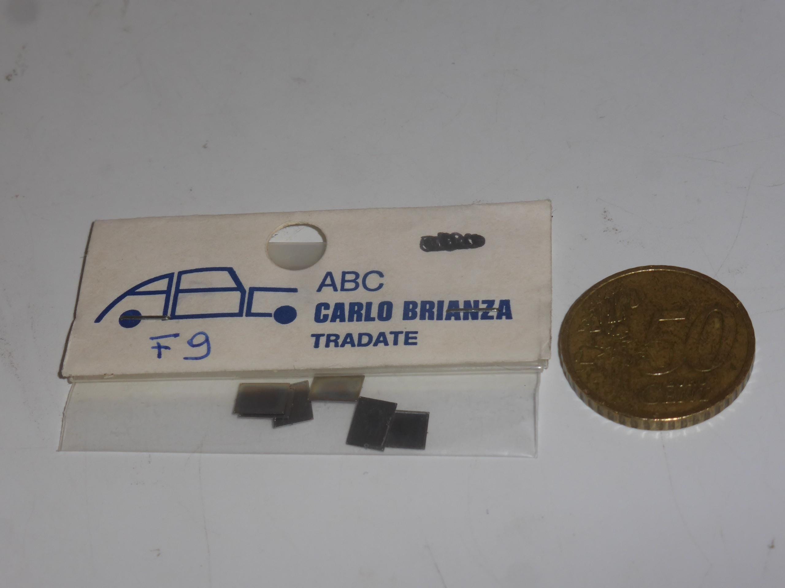 Pack of 6 photo-etched registration plates supports, highly detailed spare parts for 1:43 scale models. Produced by ABC (Carlo Brianza), catalogue number F9, now long sold out. Rare and interesting item.