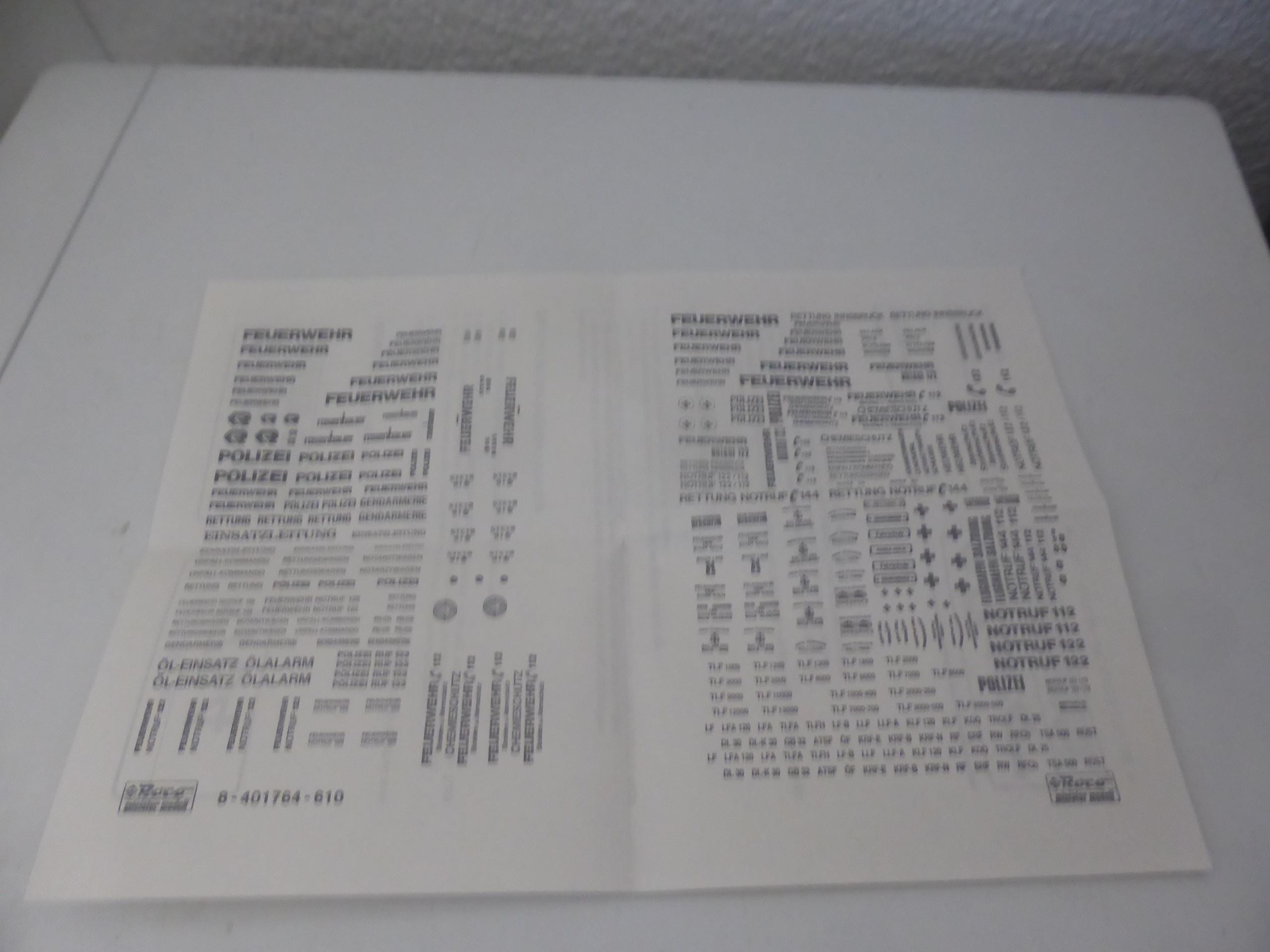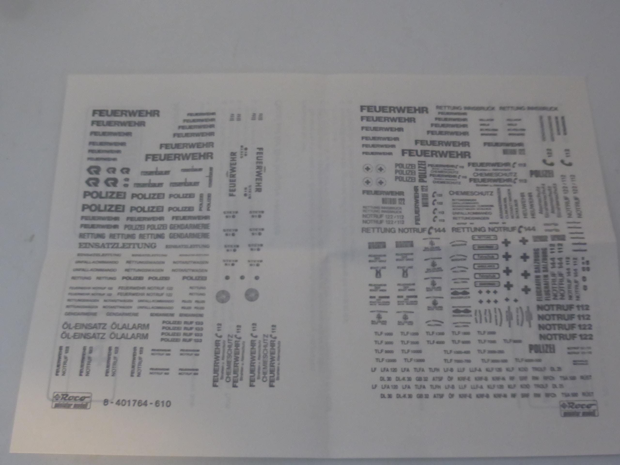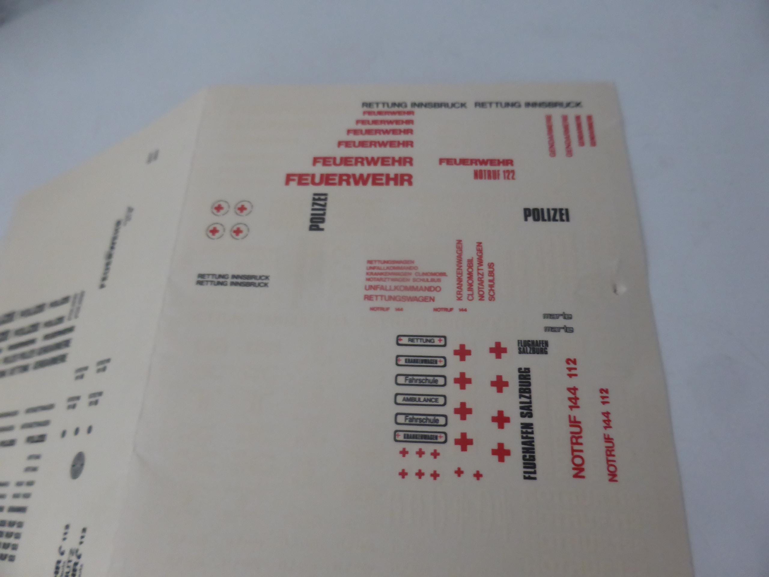 1:87 (H0 scale) waterslide decals sheet for Austrian and German fire dept and ambulance veihicle.