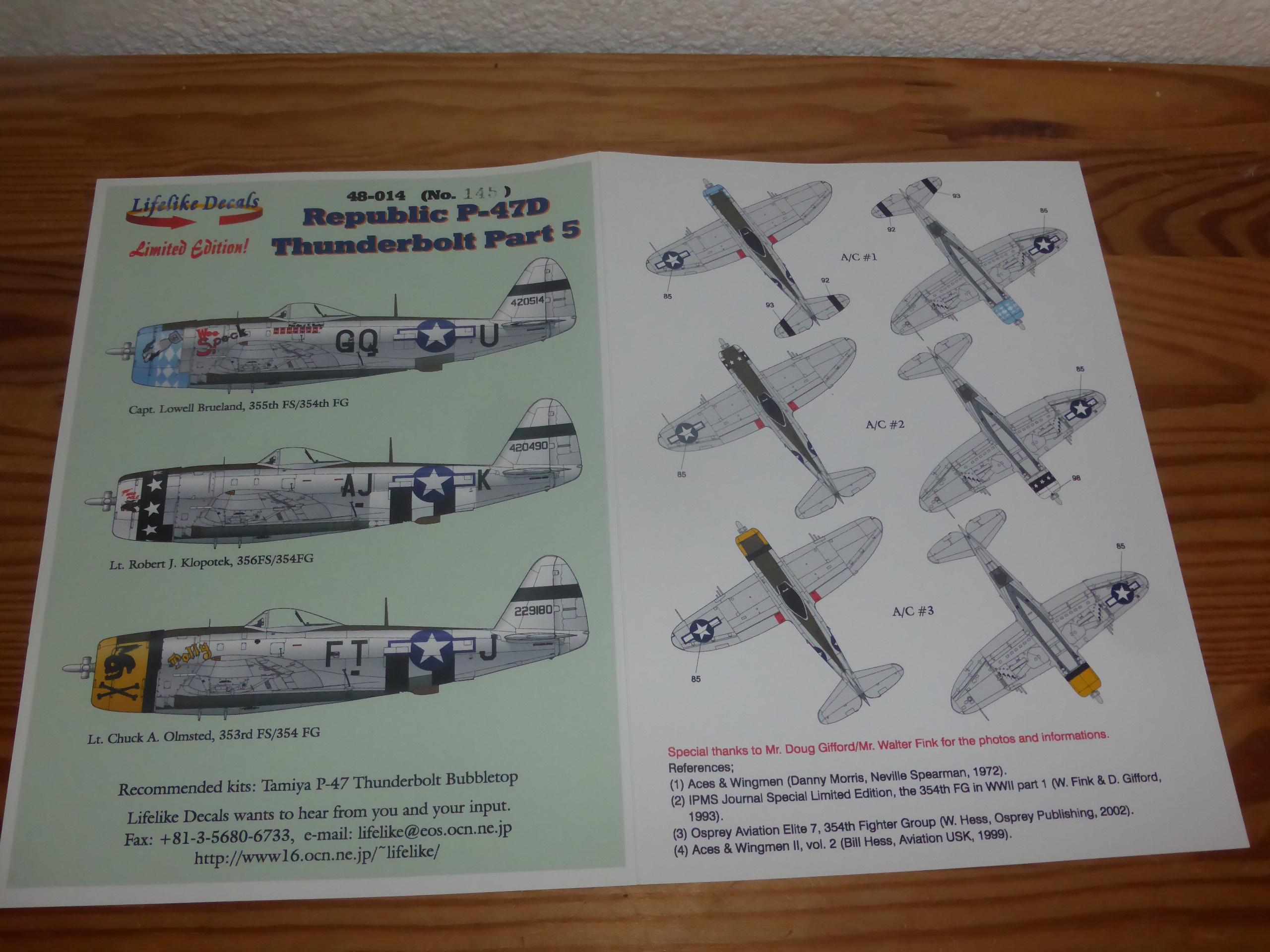Waterslide serigraphed waterslide decals sheet. 1:48 scale.