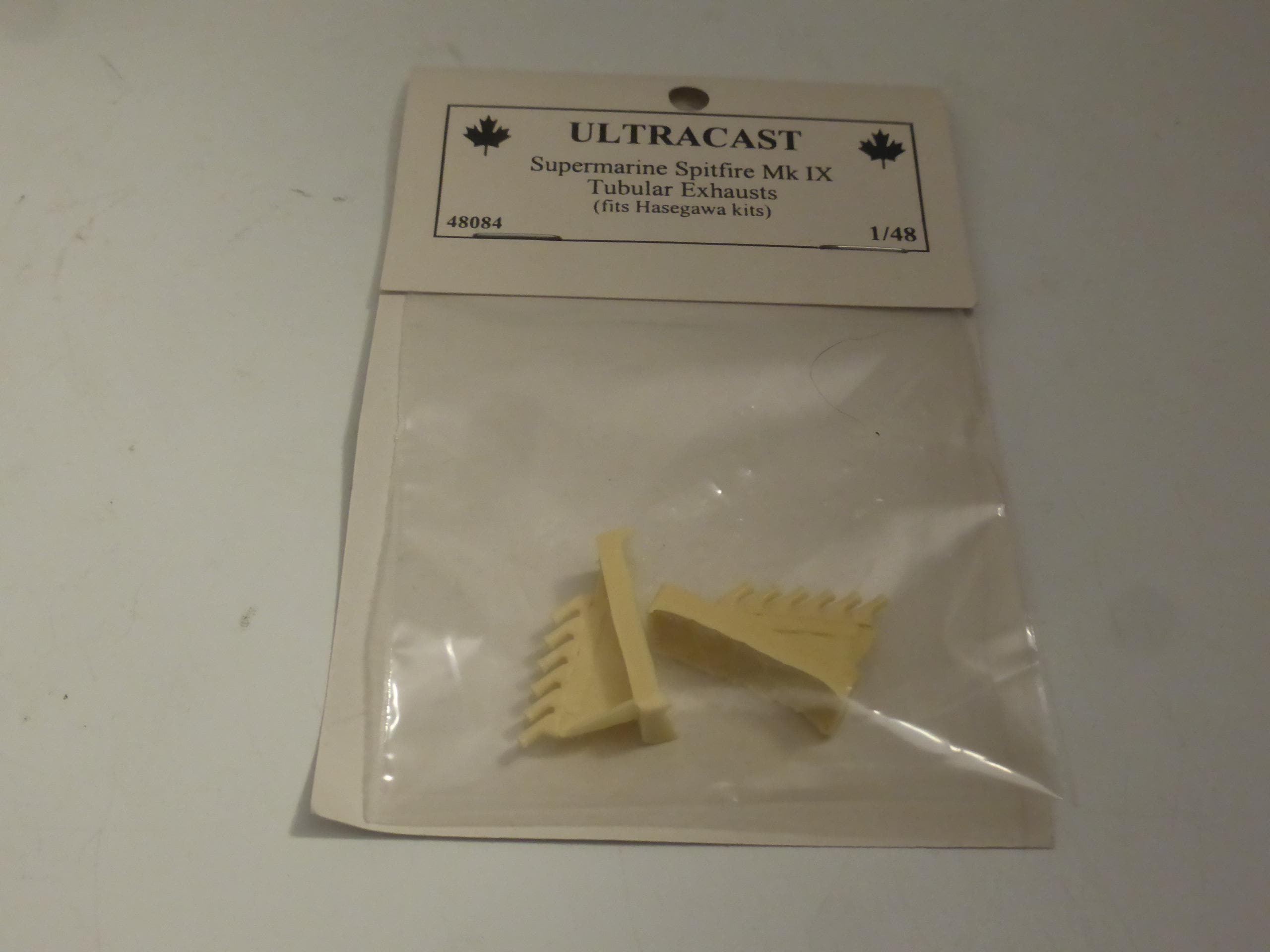 1:48 scale resin tubular exhausts for Supermarine Spitfire MkIX Ultracast 48084