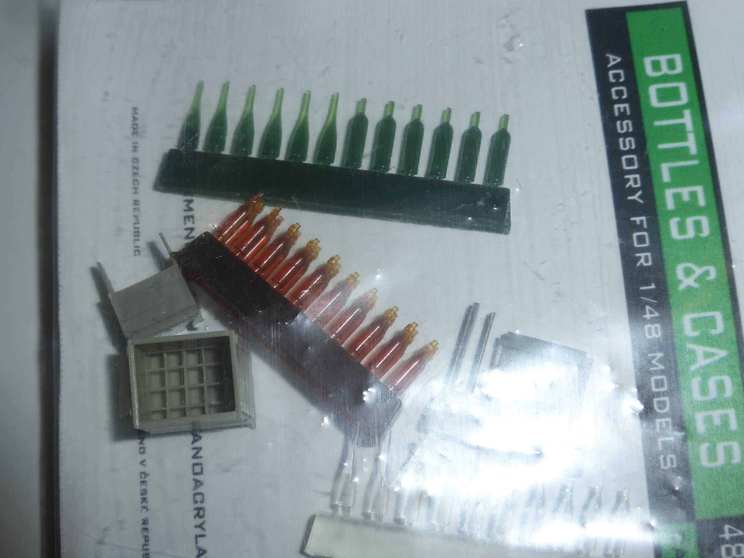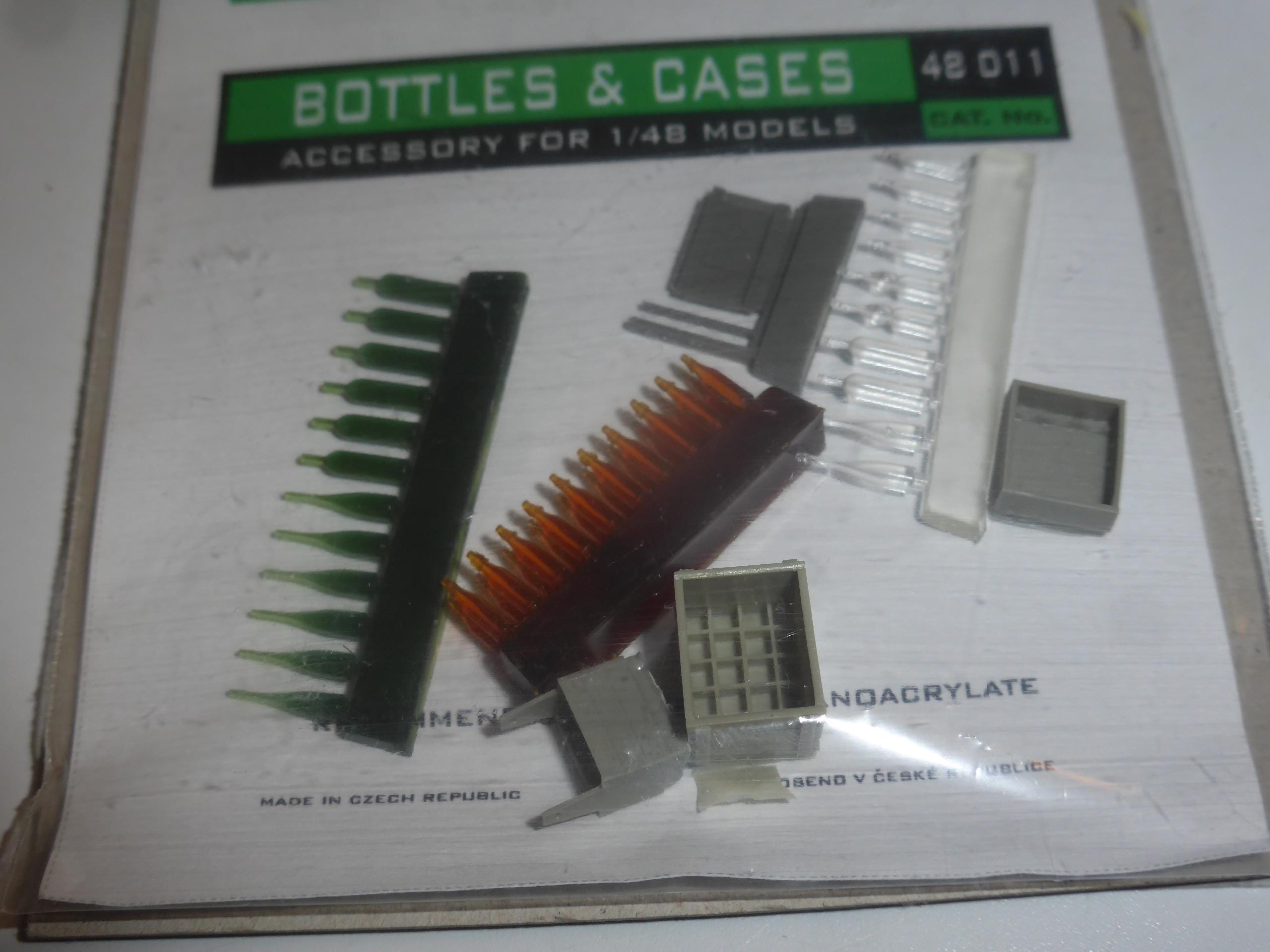 1:48 (but also easily fit 1:48 scale) set with three types of bottles (in three colours: white, green and brown) with cases, to build and paint.