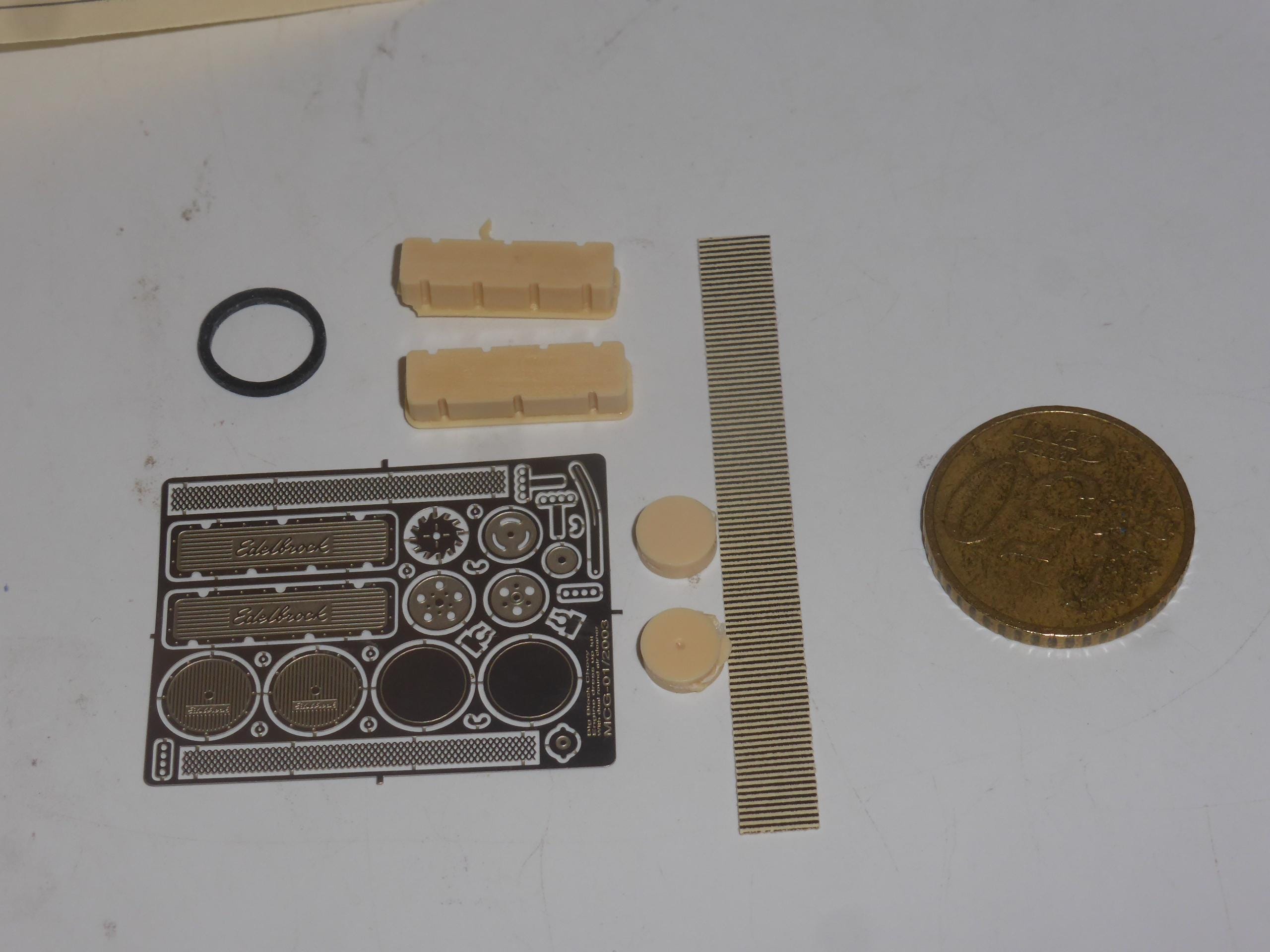 Fantastic value for money. Photoetched, resin, paper and rubber parts. Instructions included. Really nice.