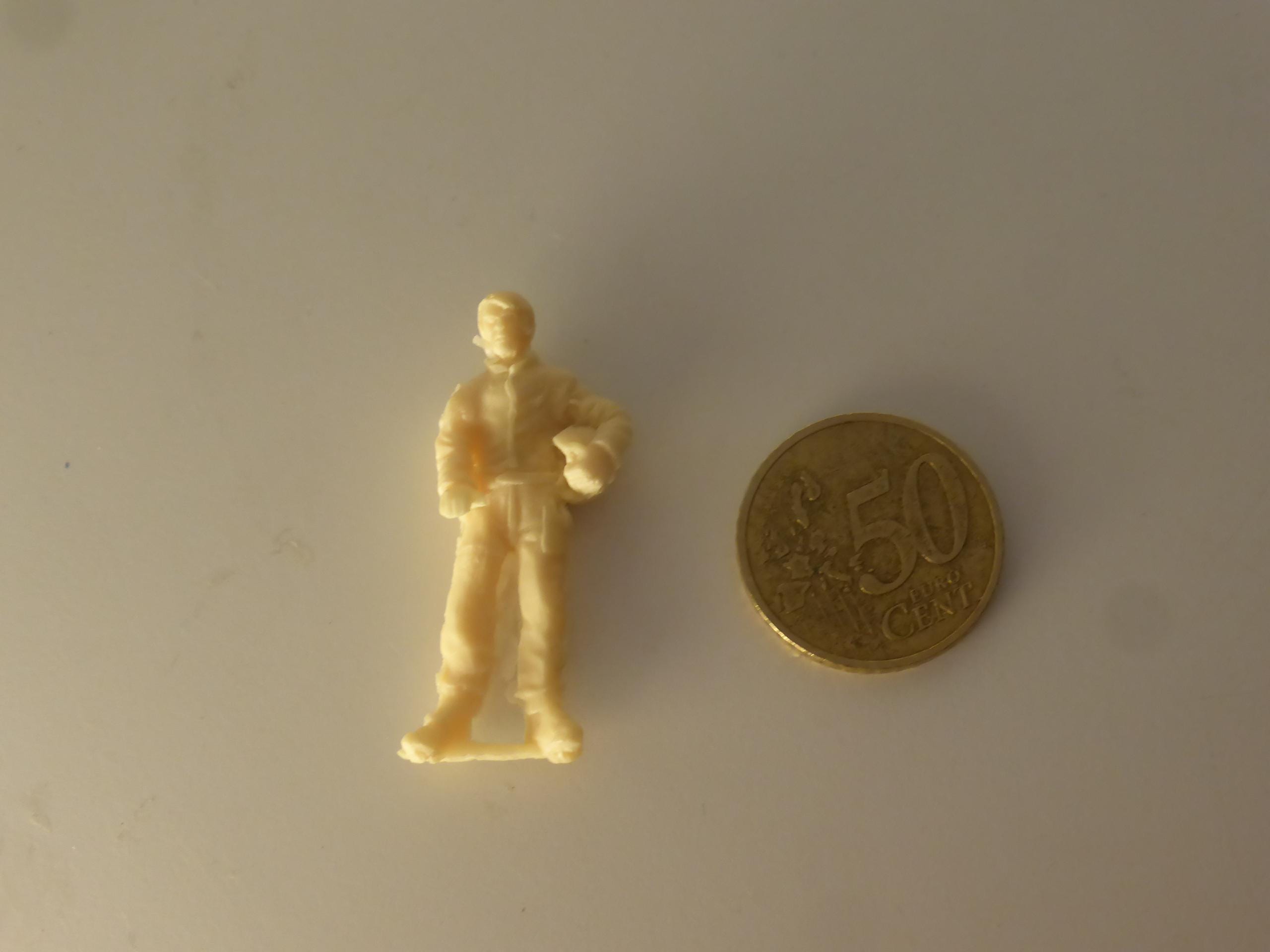 1:43 resin figurine racing driver of the 70-80s standing with integral helmet under his arm (to prepare and to paint)