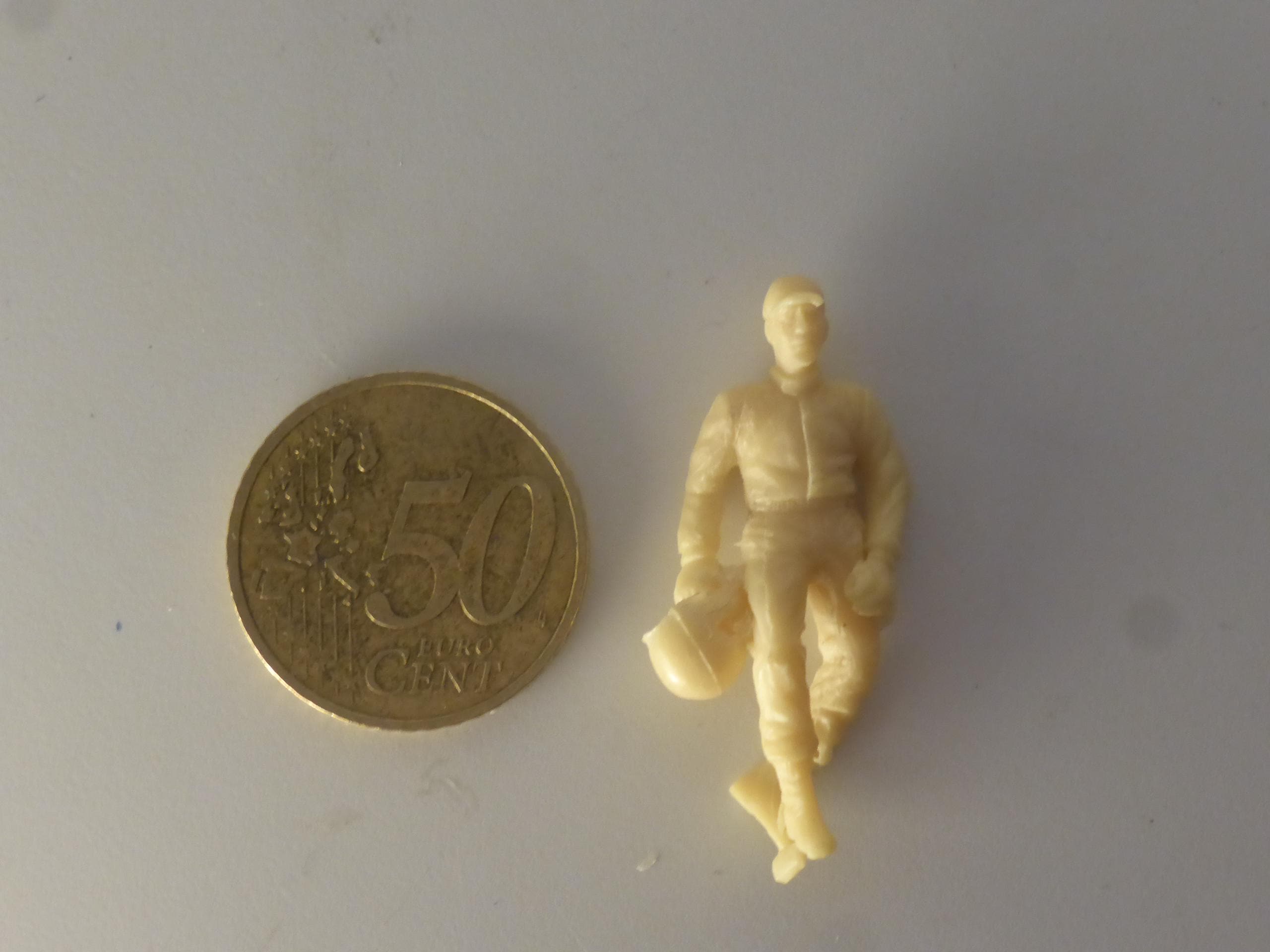 1:43 resin figurine racing driver of the 70-80s walking with integral helmet