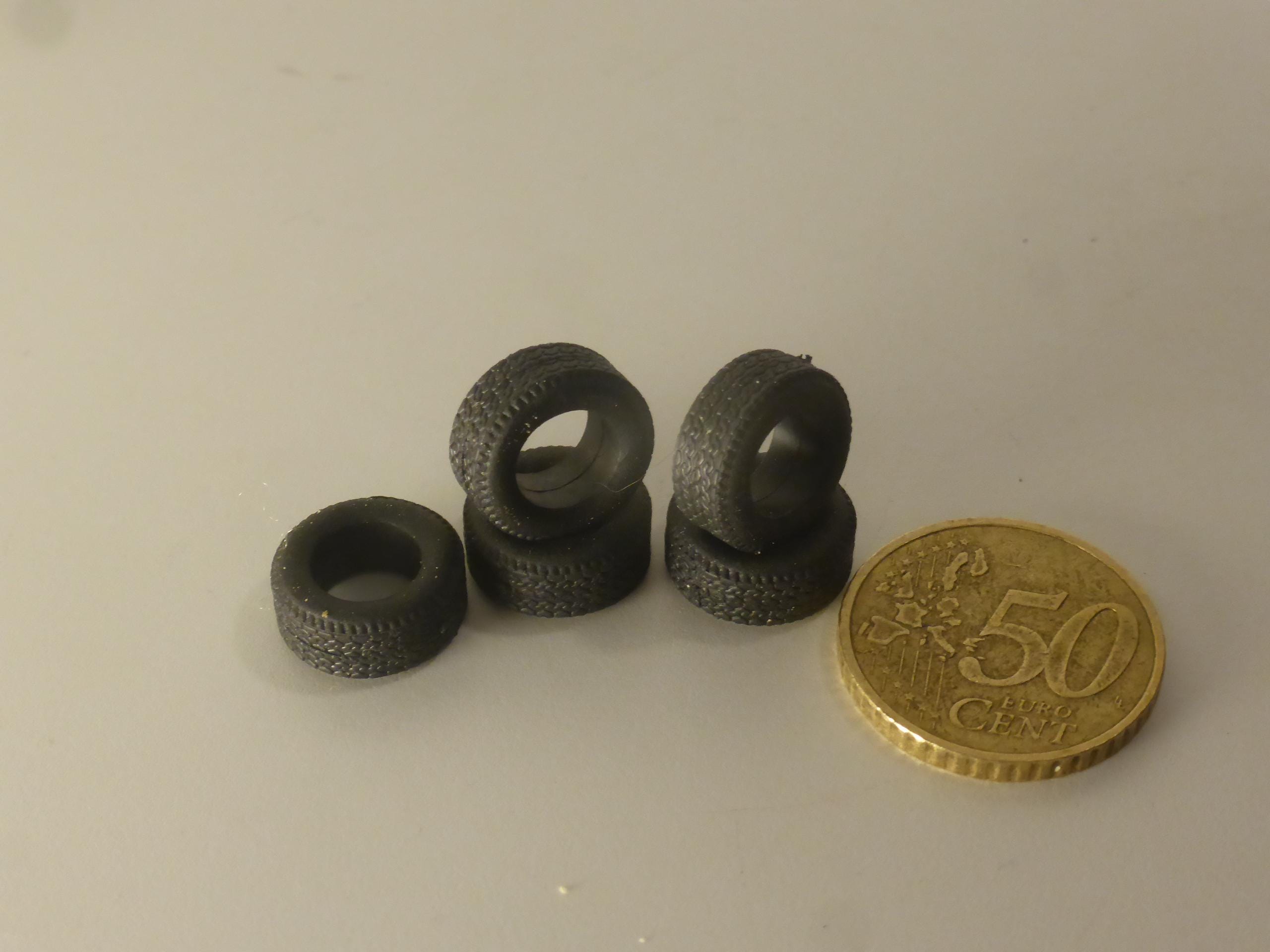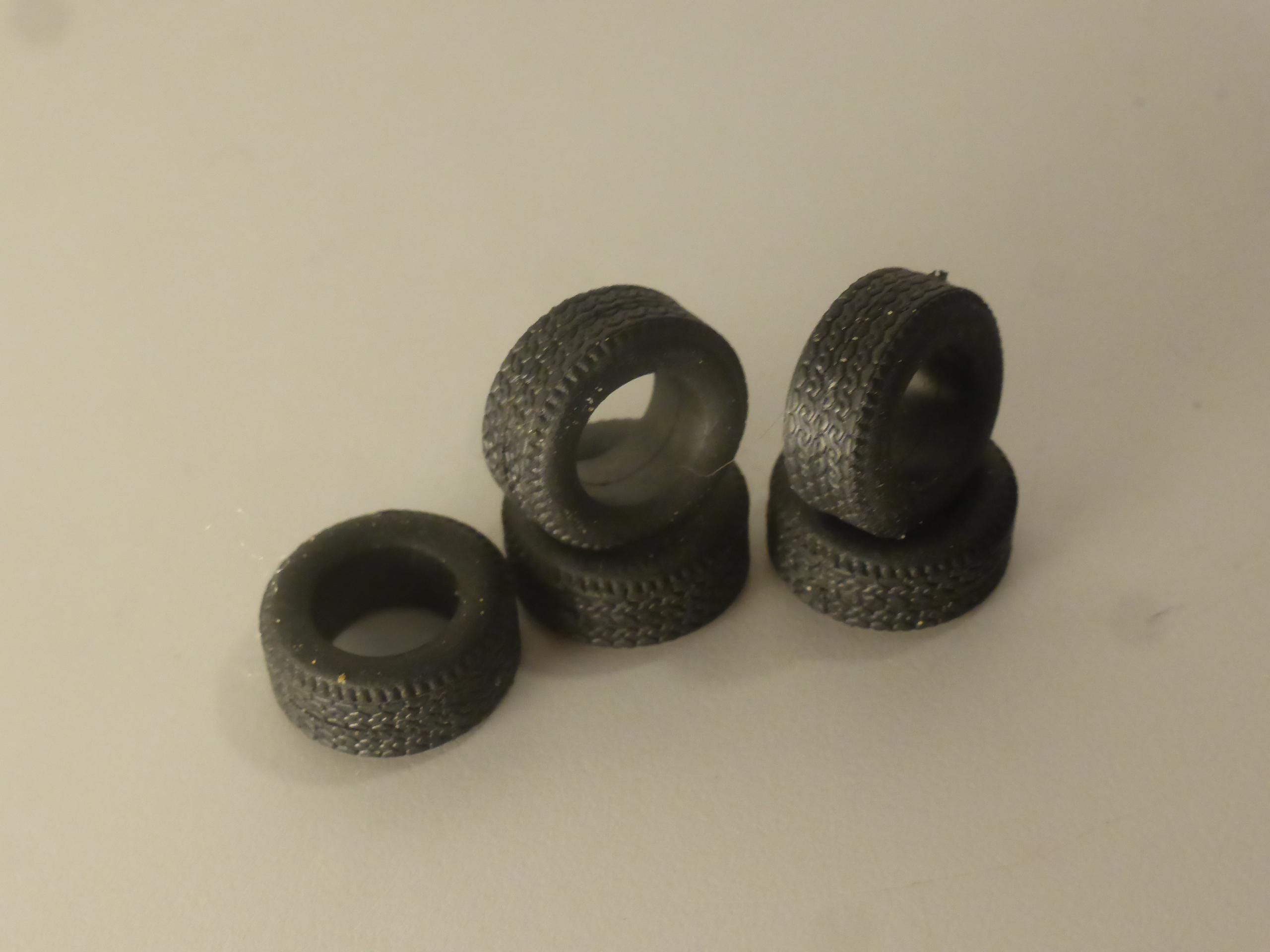 Set of 5 tires, rubber. Treaded (high definition, see photos).