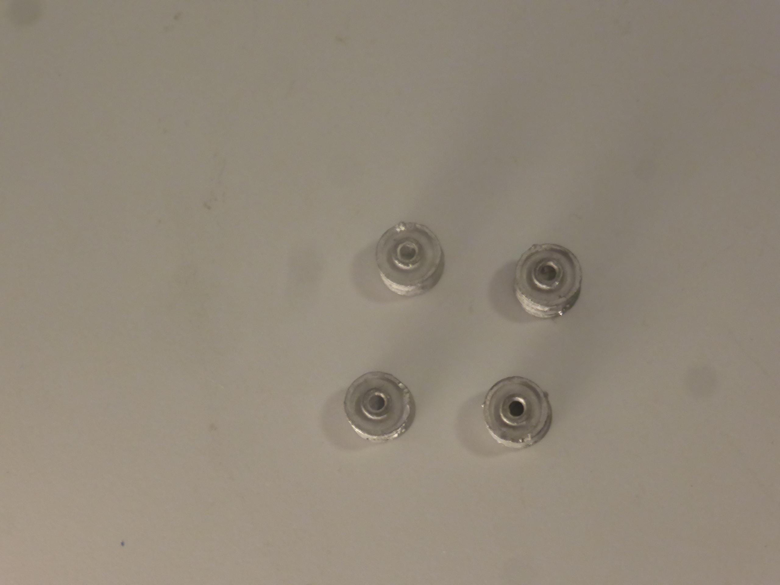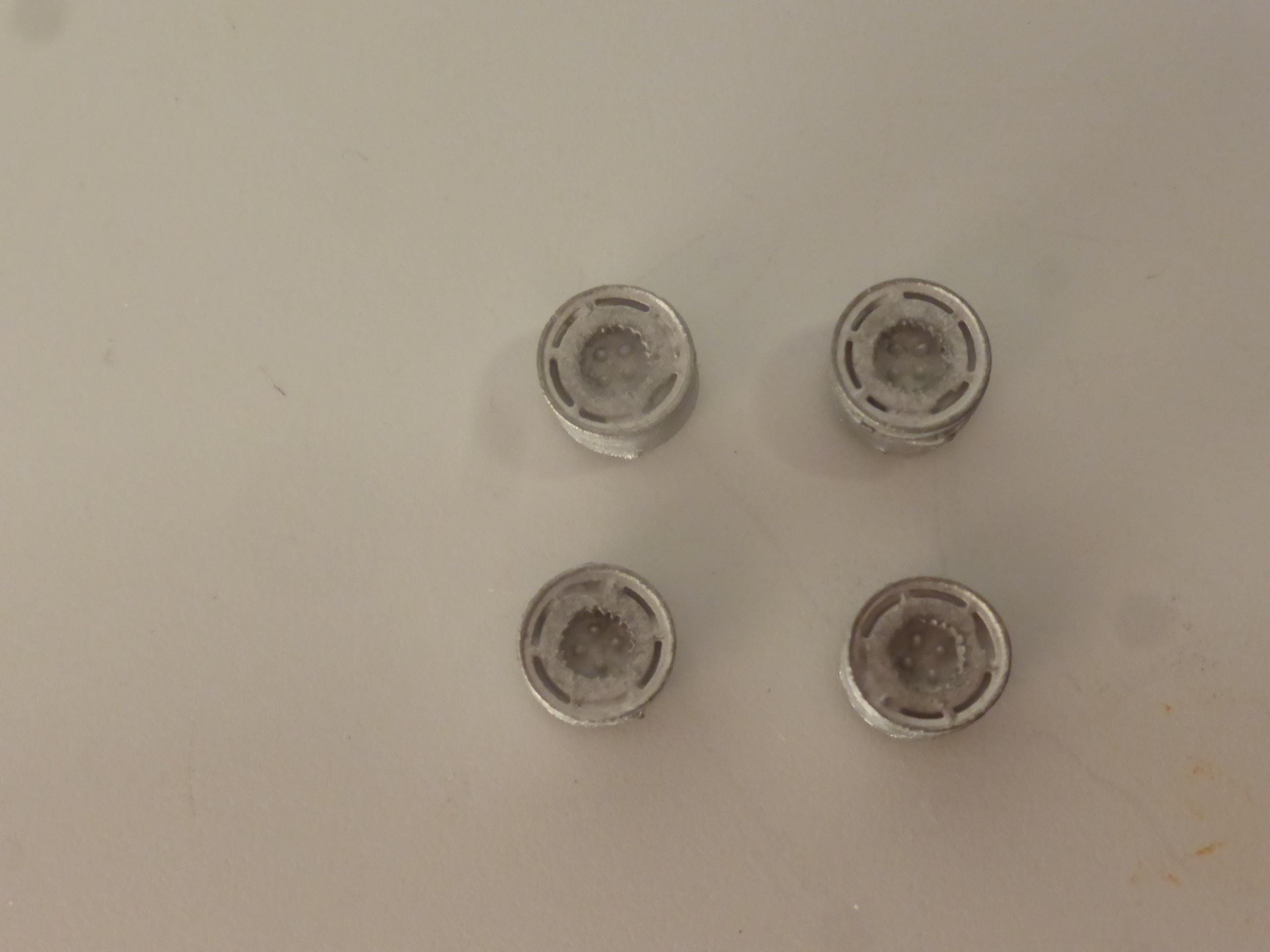 Set of white metal wheels, no tires provided.