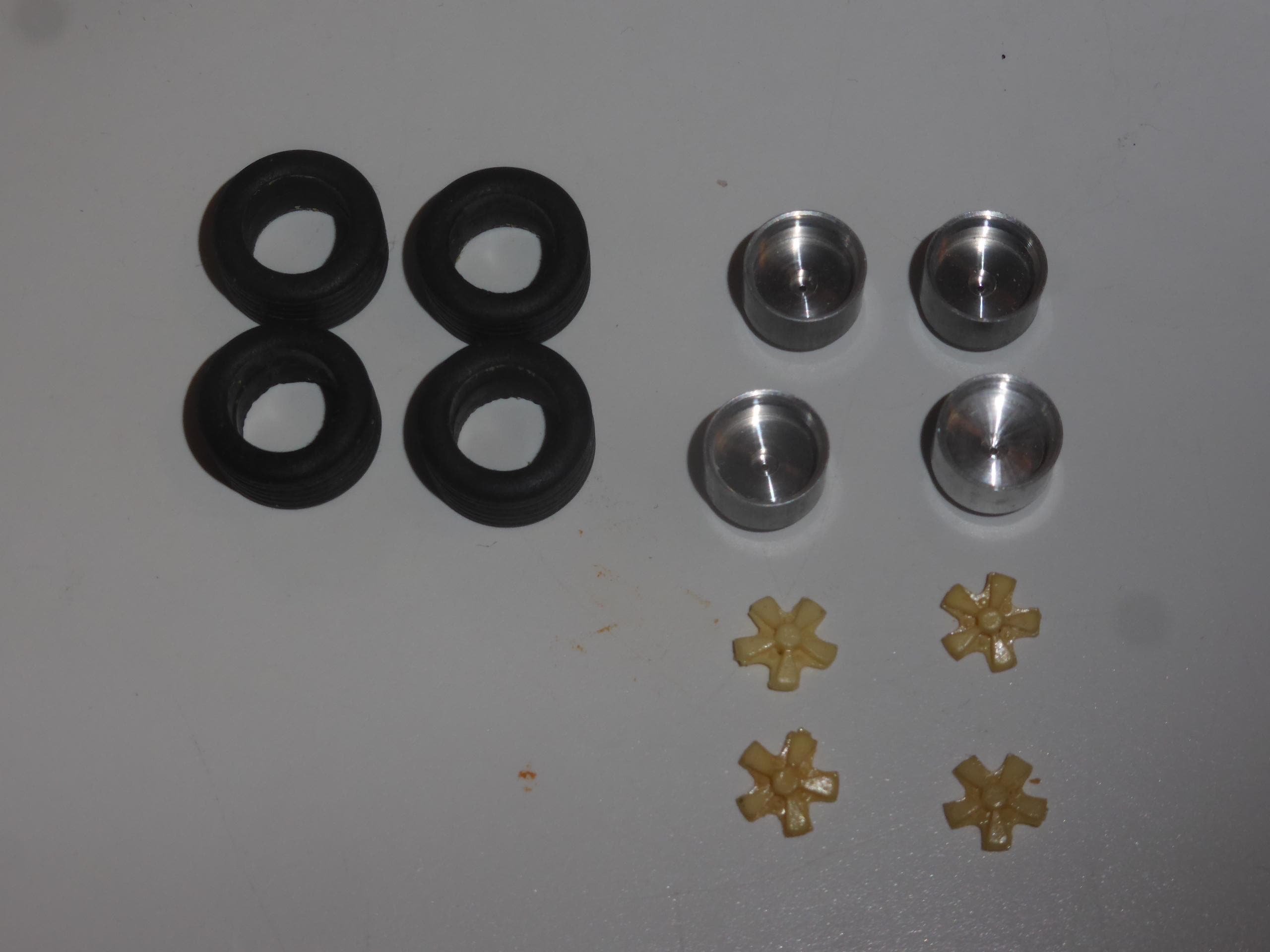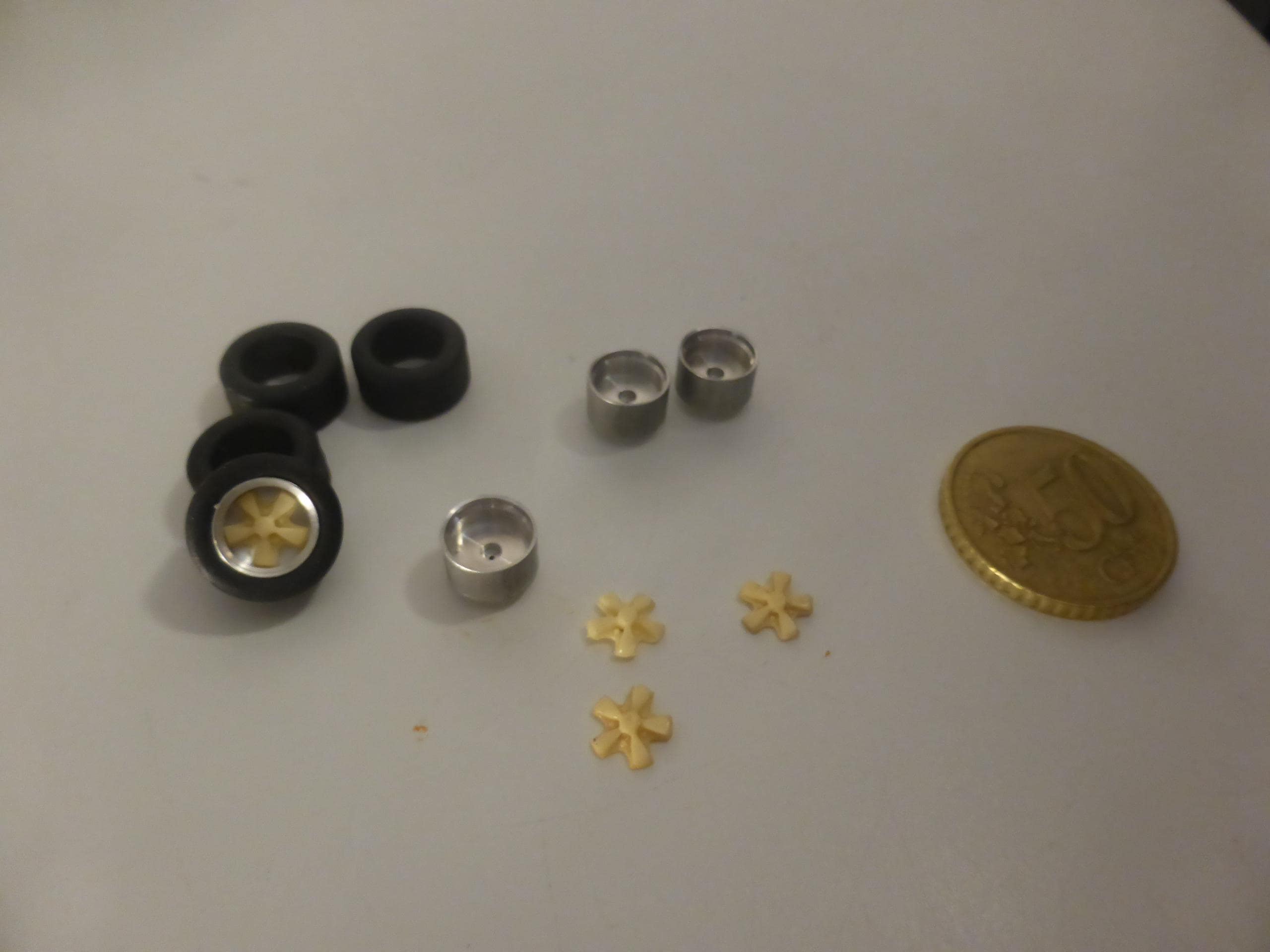 1:43 scale turned and resin Fuchs type wheels (with treaded tires) for Porsche 911 of the 70-80s GMW027