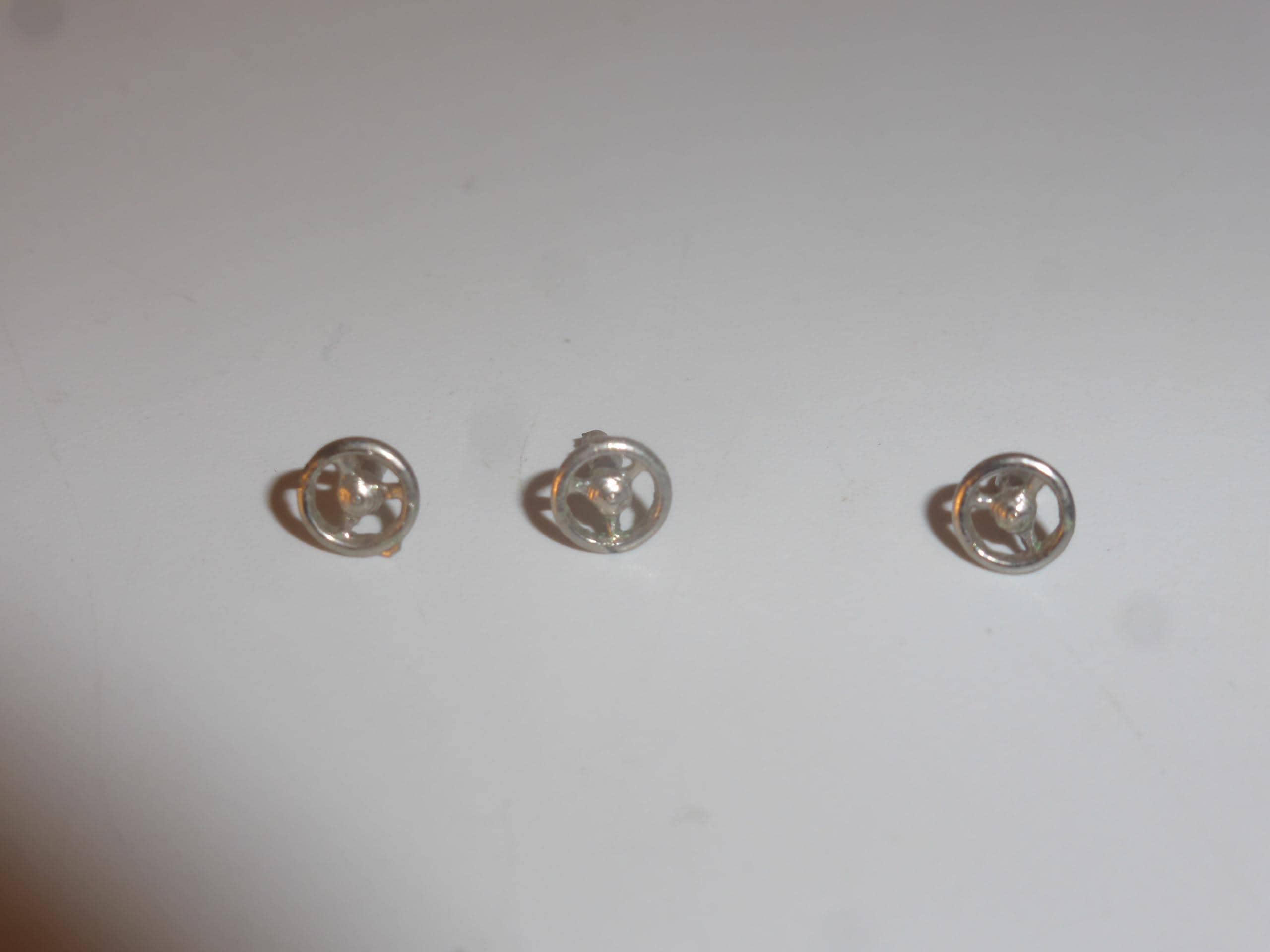 1:43 nikeled white metal small 3-spokes steering wheels (pack of 3 pieces)