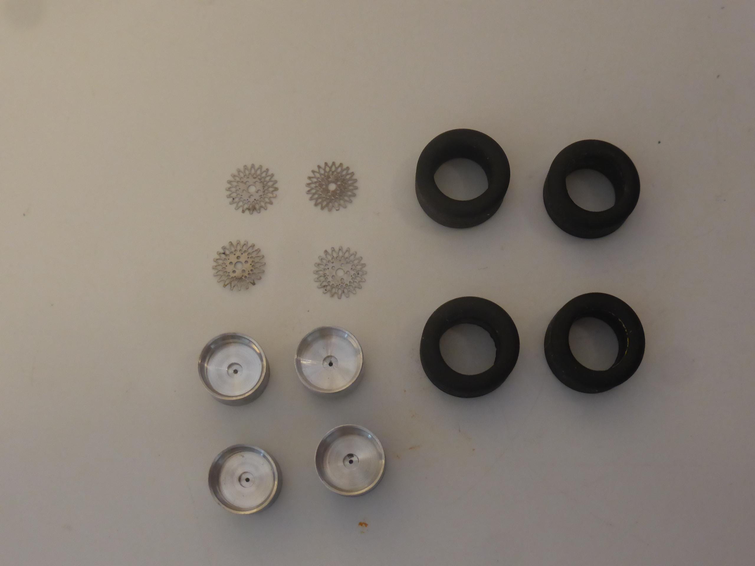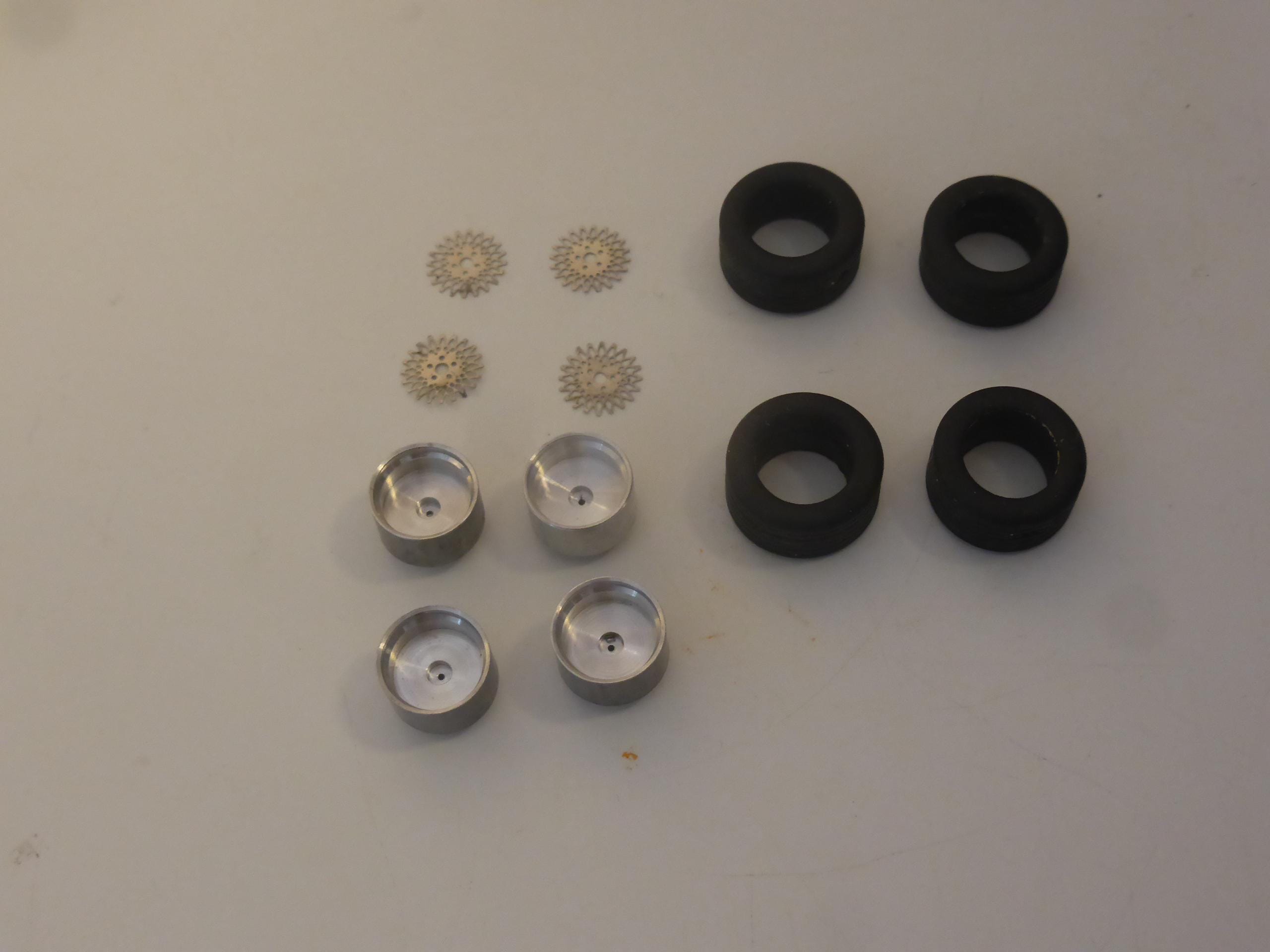 1:43 scale turned and photoetched wheels (with treaded tires) for modelcars