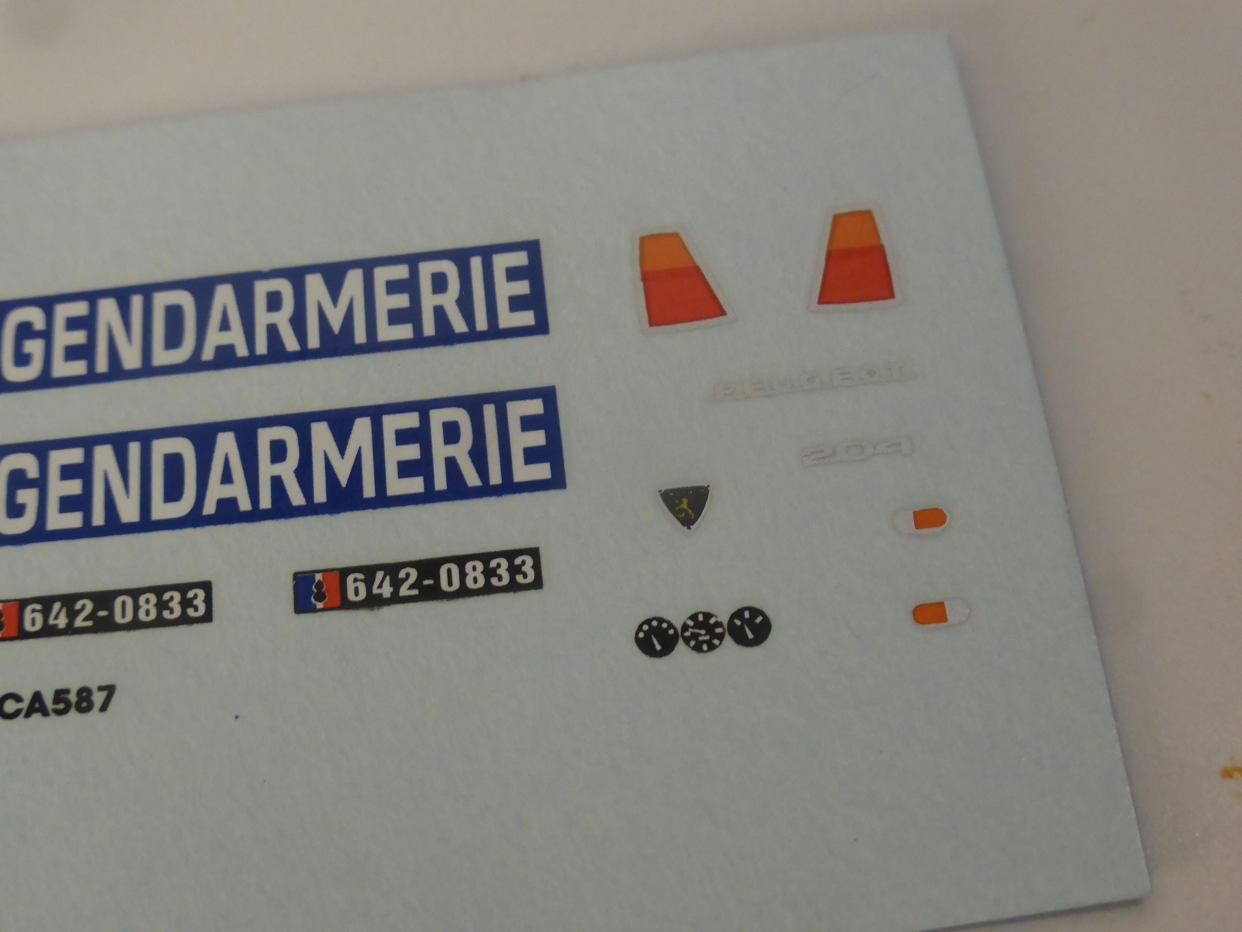 1:43 waterslide decals sheet Gendarmerie for Peugeot 204 and other cars