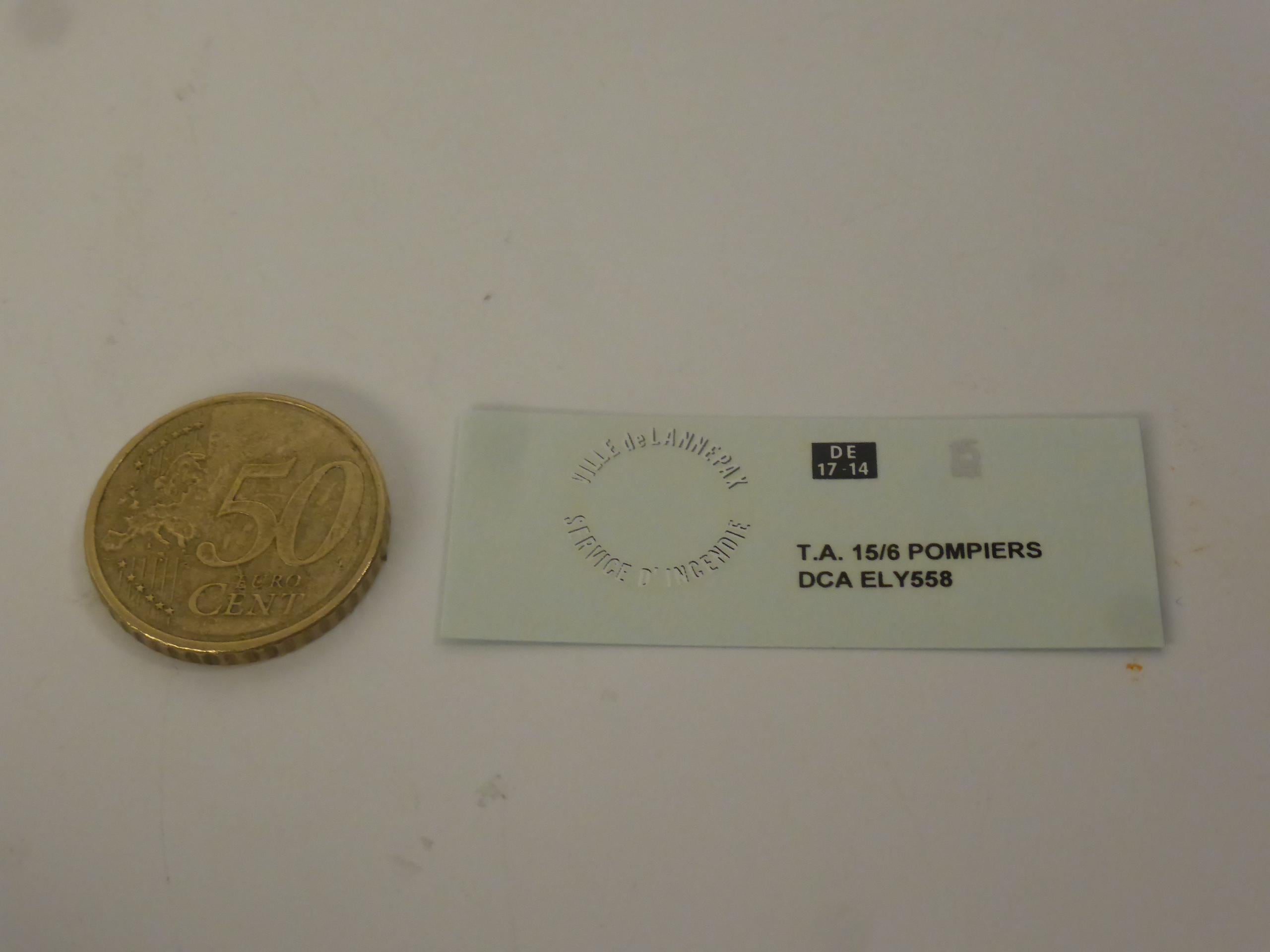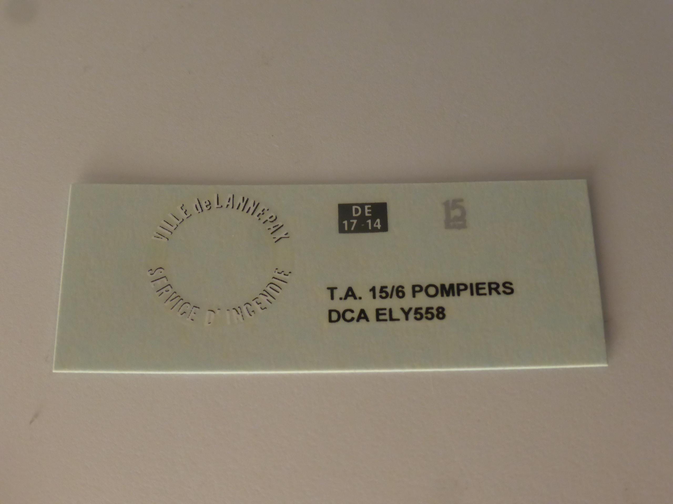1:43 waterslide decals sheet Pompiers ville de Lannepax Citroen TA 15/6 etc