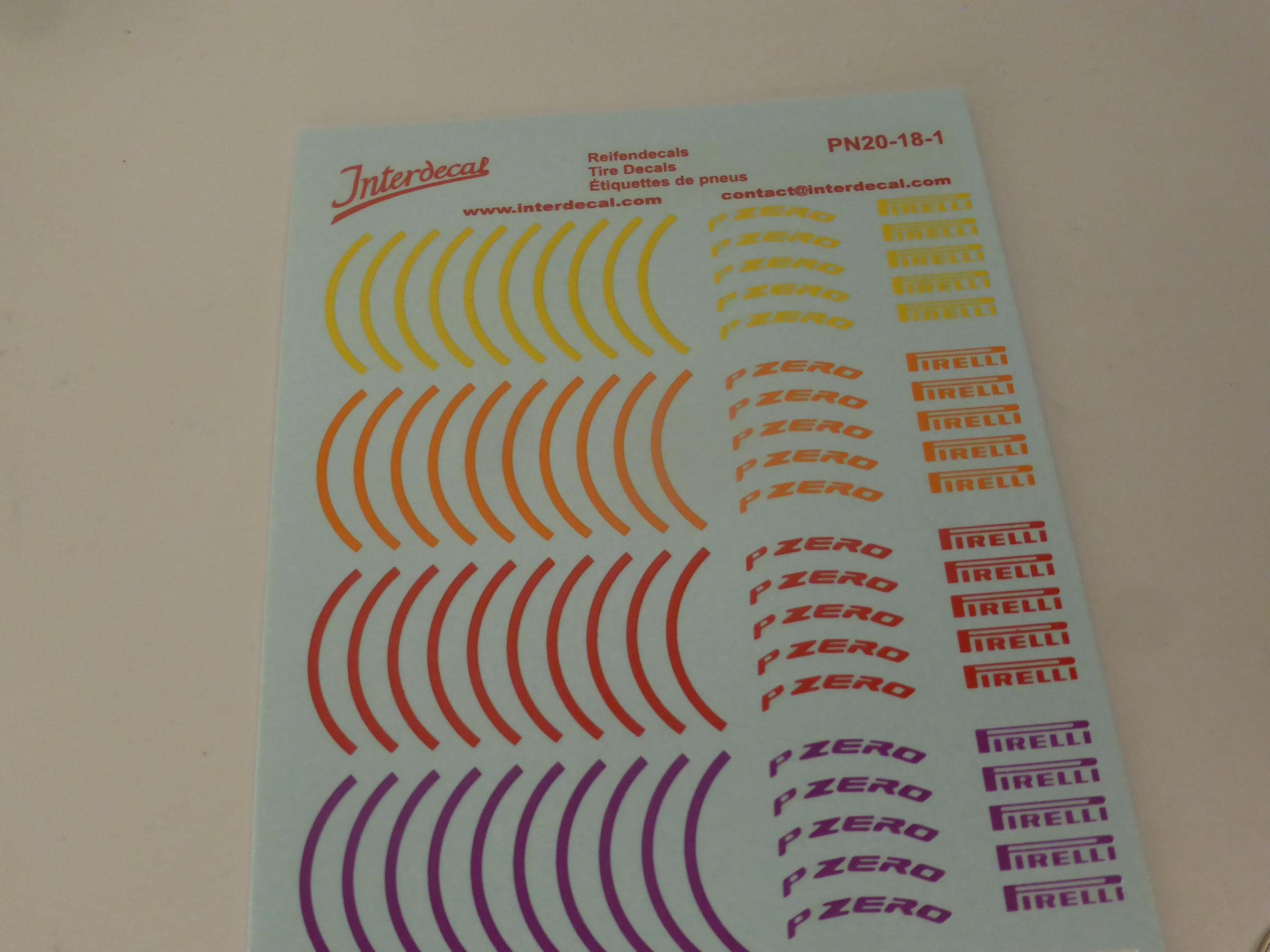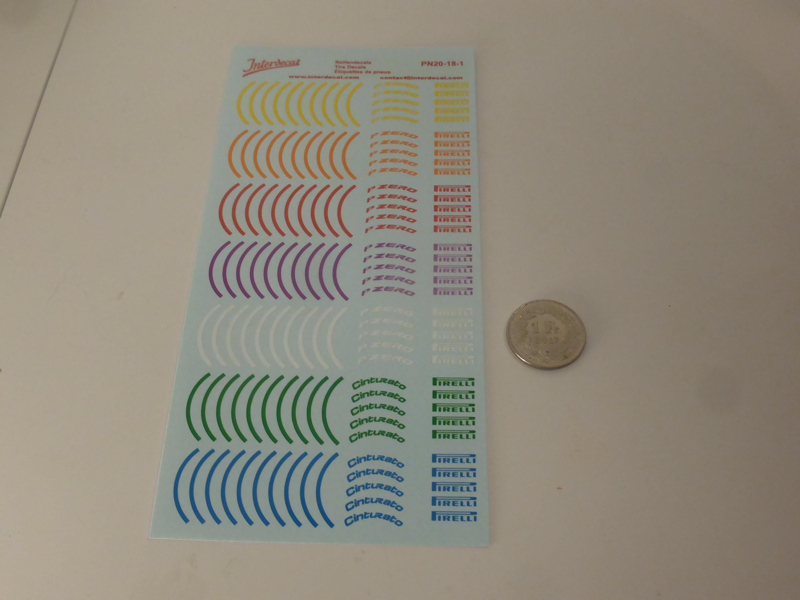 Waterslide decals sheet, serigraphed. Fits 1:18 (and similar) model cars.