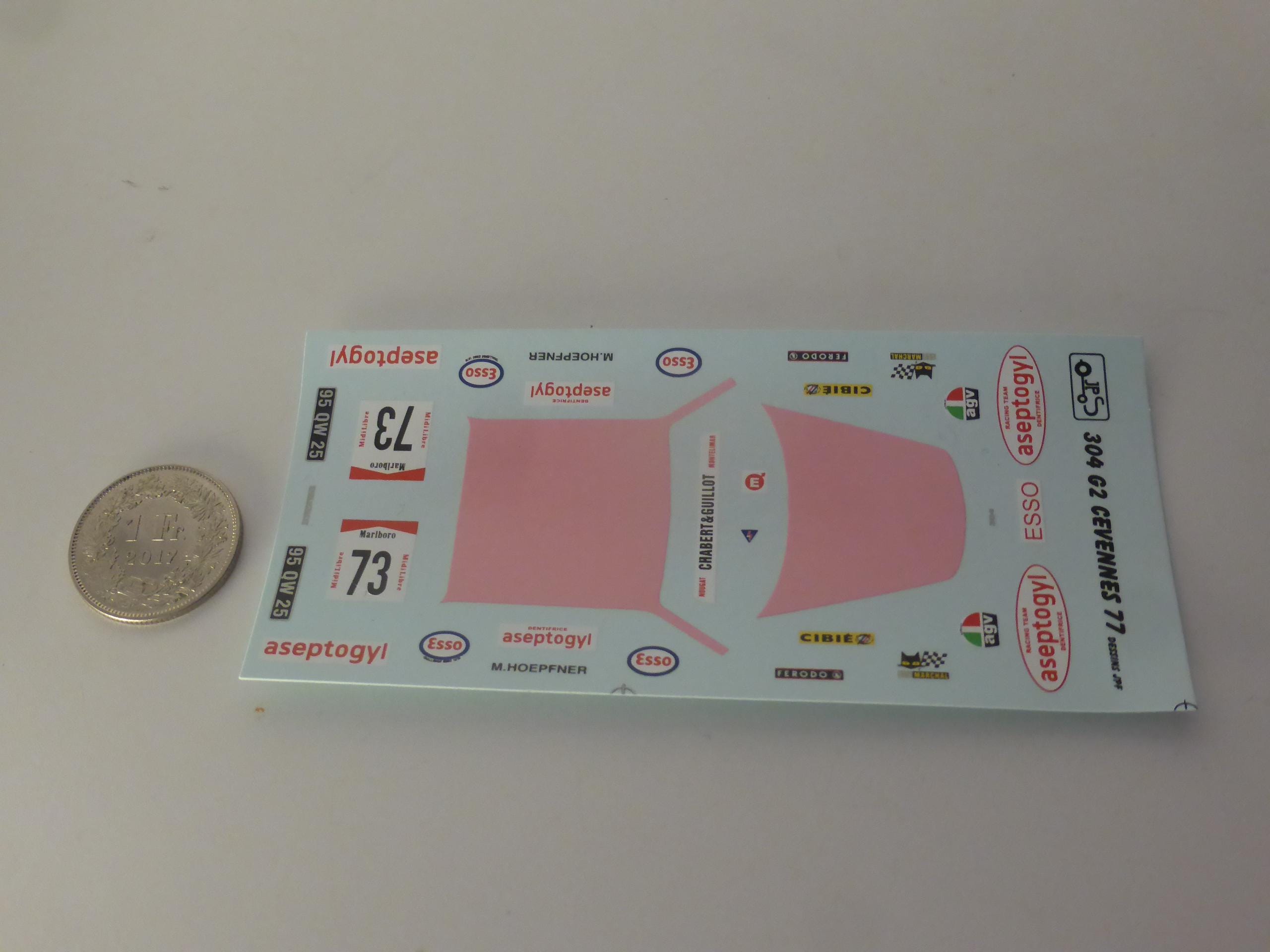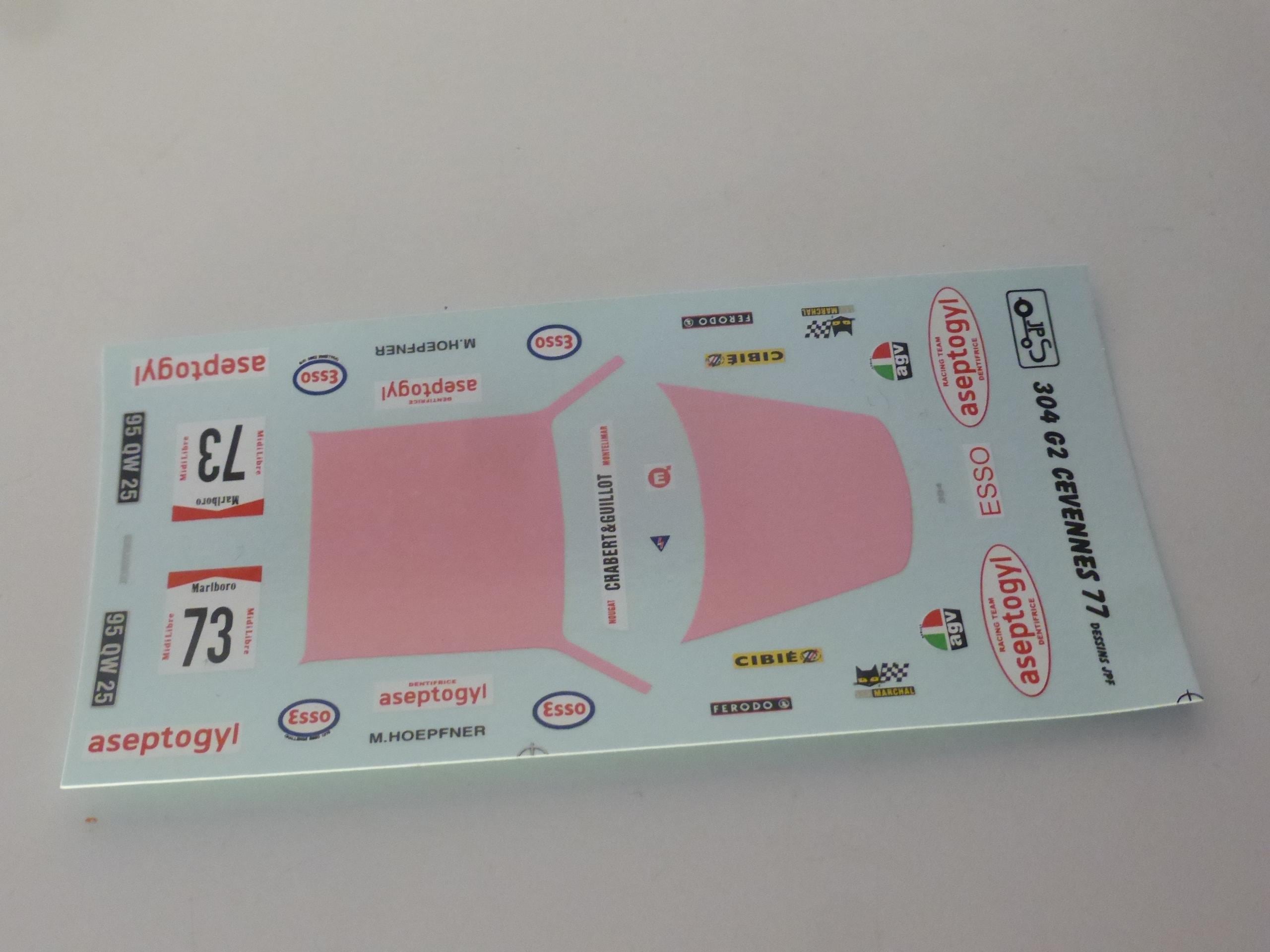 1:43 scale decals set (complete, see photos) for Peugeot 304 Group 2 Team Aseptogy Criterium des Cevennes 1977 #73 Marianne Hoepfner