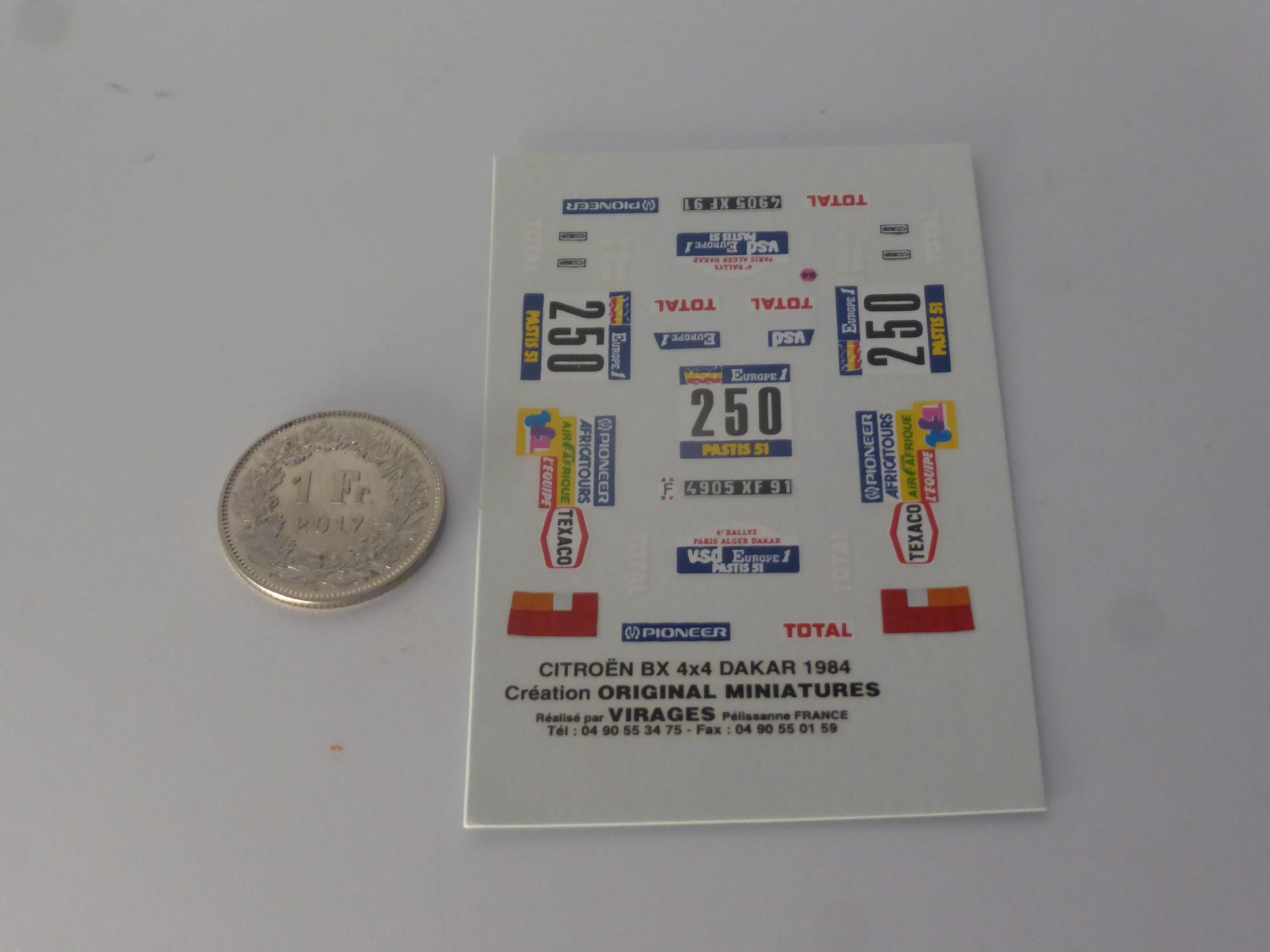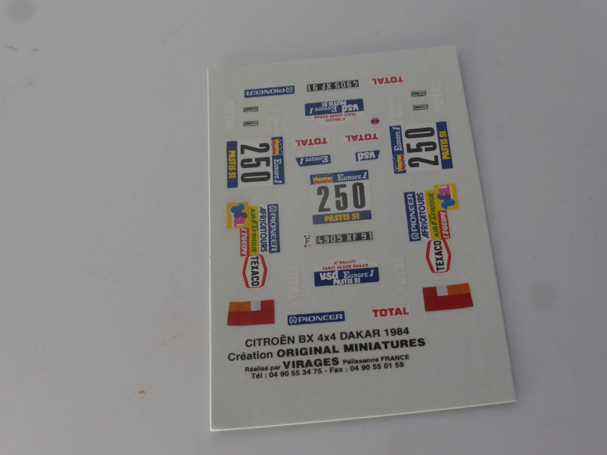 1:43 waterslide decals for Citroen BX 4x4 Paris-Dakar 1984 Michel Morkycki / Odile Viemon