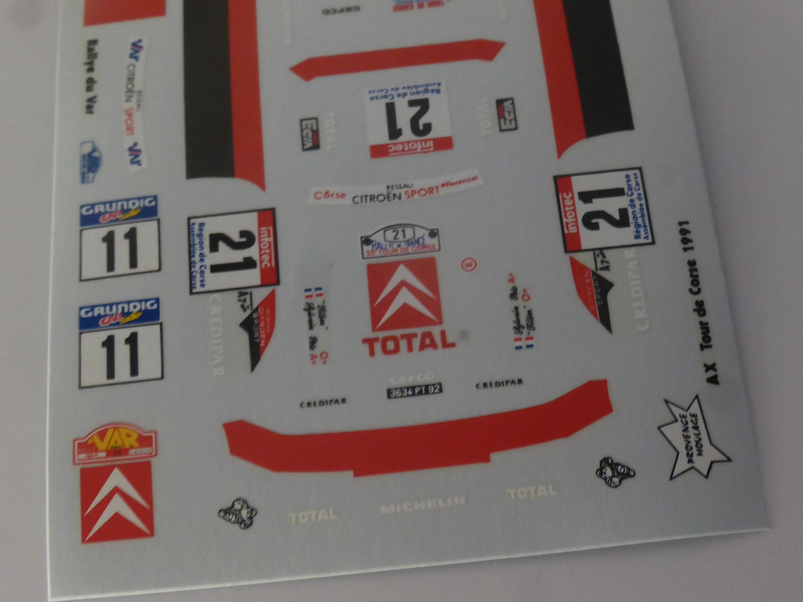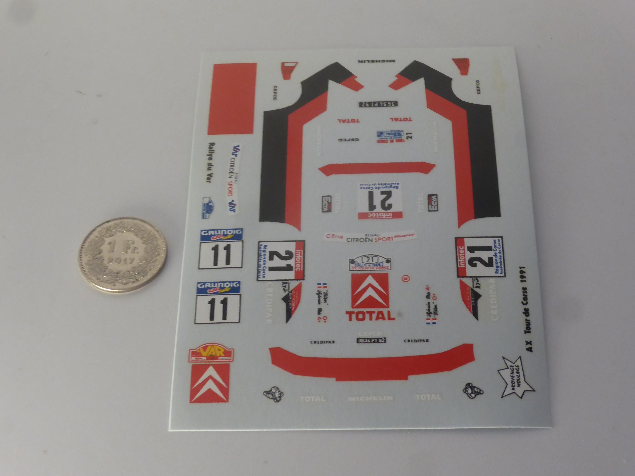 1:43 waterslide decals for Citroen AX Sport Group A Tour de Corse 1991 #21 or Rallye du Var 1991 #11 Polo/"Tilber"