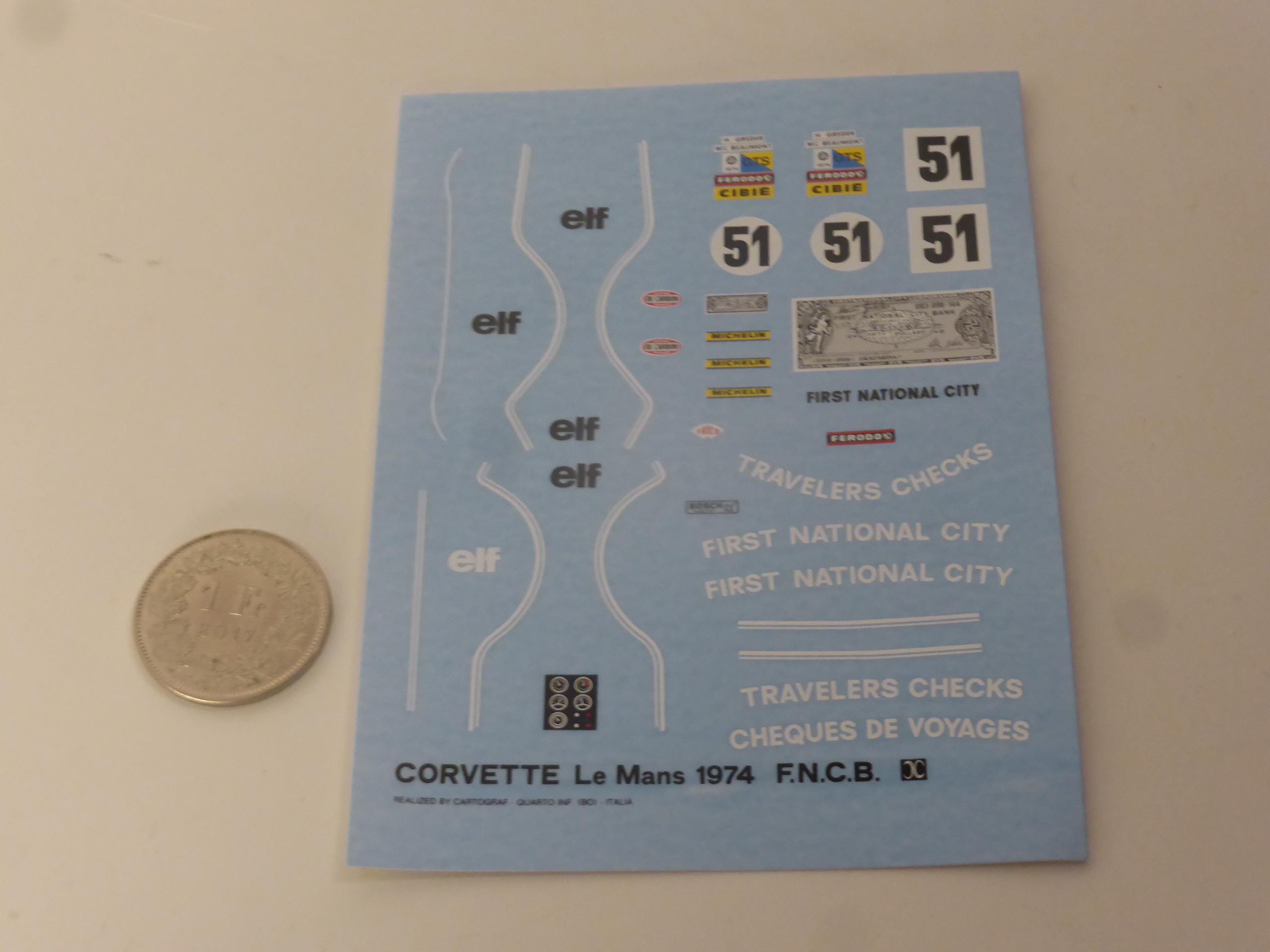 1:43 decals for Chevrolet Corvette FNCB Le Mans 1974 #51 AMR Cartograf