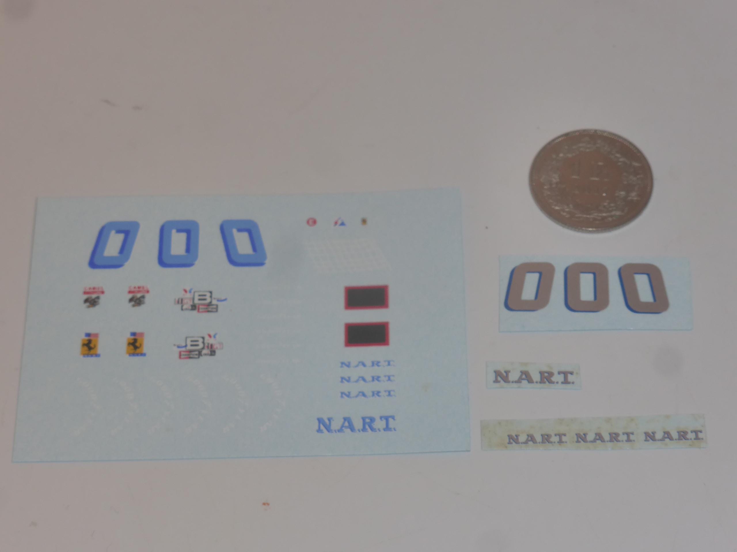 Perfect conditions, first quality Cartograf production, absolutely original. Issued for the Remember kit. Waterslide decals sheet, serigraphed. Always stored with great care. Including correct chromed race numbers and NART scripts.
