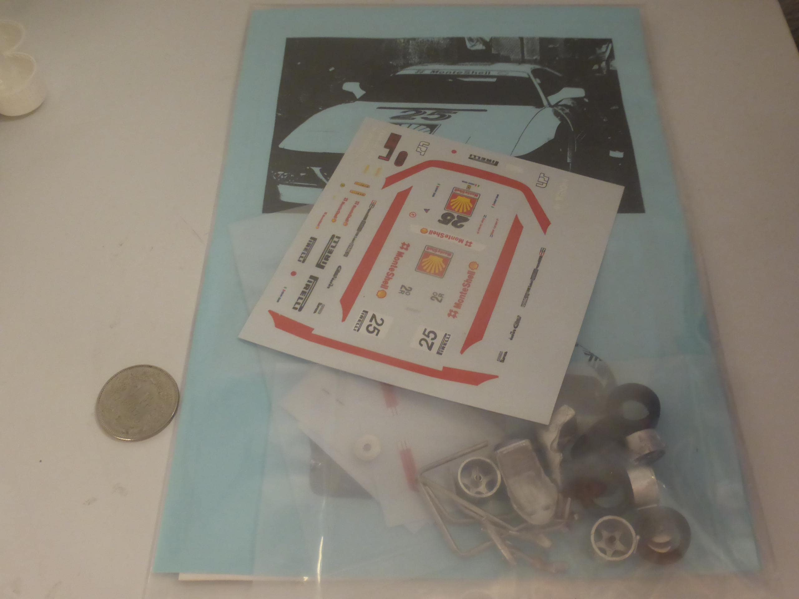 A very interesting and rare transkit produced by Equipe Tron for diecast models or special kits. The pack includes a waterslide serigraphed decals sheet, additional white metal parts (wheels with tires, seats, side mirrors, rollbar, specific steering wheel) to obtain the Montshell-sponsored version that raced in the 1993 Italian GT Championship with Oscar Larrauri at the wheel. Donor model NOT included. Pack is still sealed.