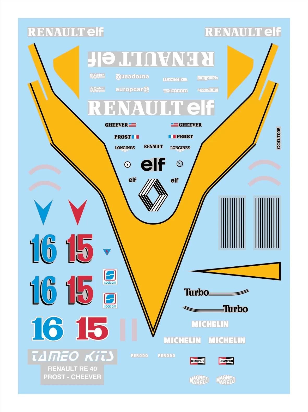1:43 waterslide serigraphed decals Renault RE40 Belgian GP 1983 Prost/Cheever Tameo TMK008