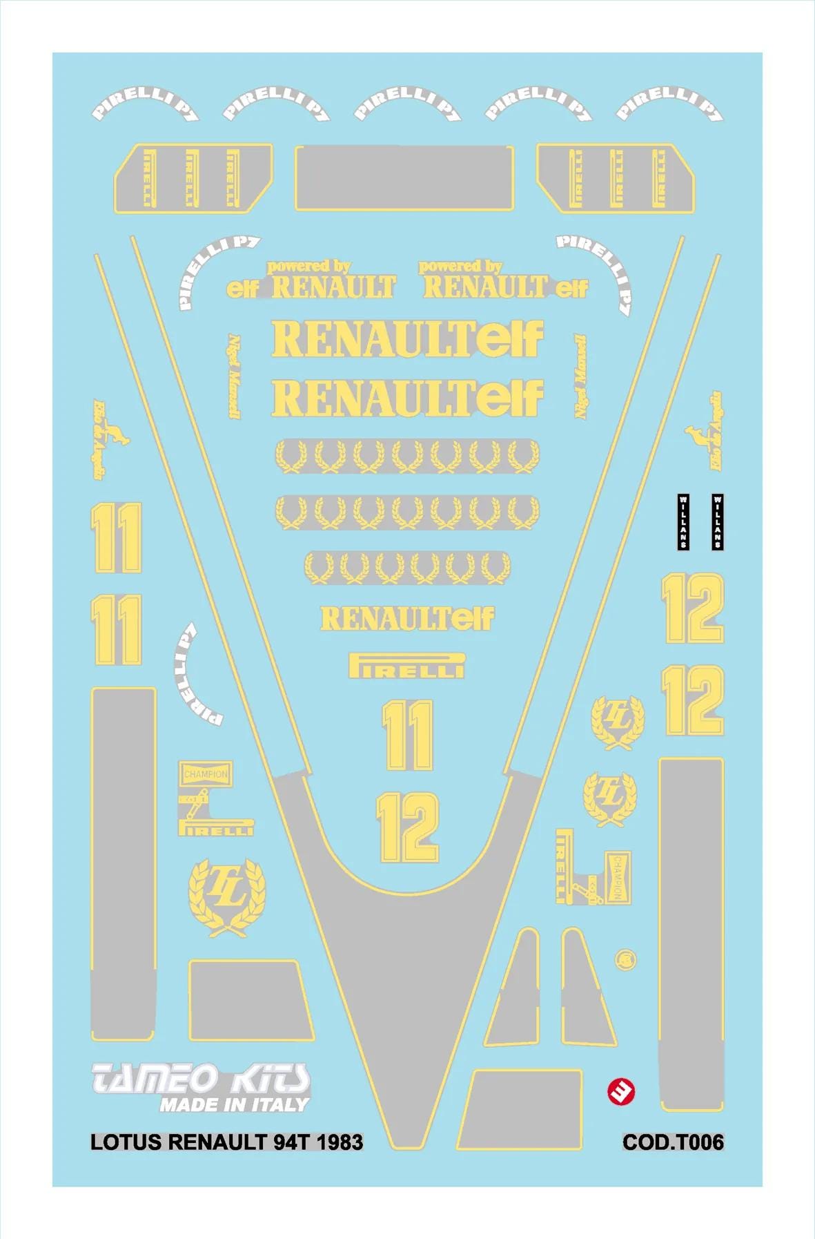 1:43 waterslide serigraphed decals Lotus Renault 94T F1 European GP 1983 Mansell/De Angelis Tameo TMK009
