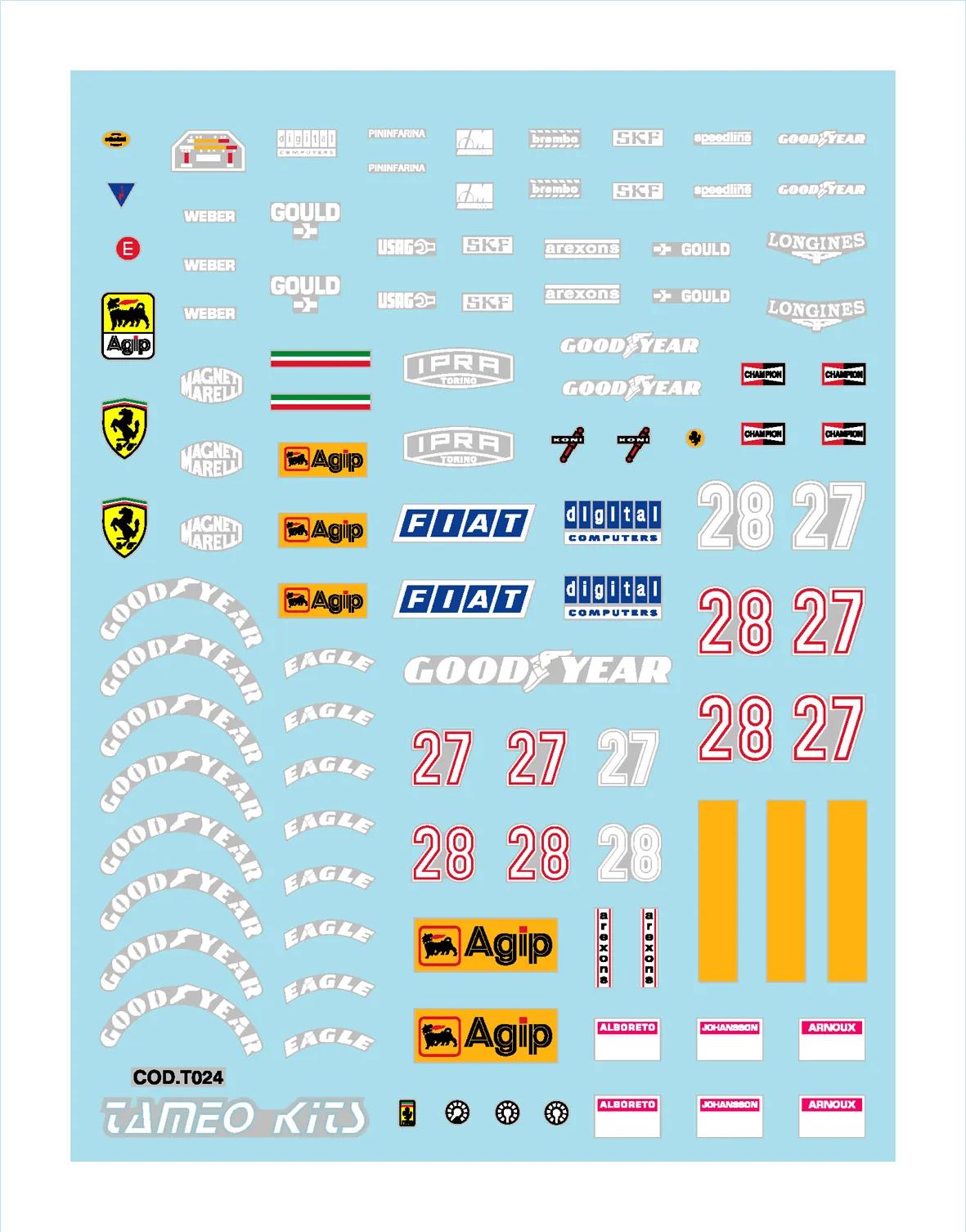 1:43 waterslide serigraphed decals Ferrari F1/86B F1 Austrian GP 1986 Alboreto/Johansson Tameo TMK046