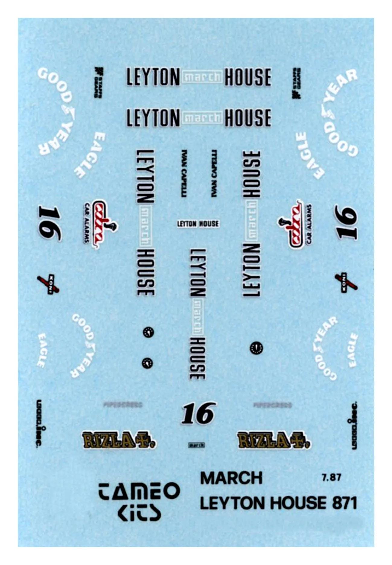 1:43 waterslide serigraphed decals March Cosworth 871 F1 Monaco GP 1987 Capelli Tameo TMK060
