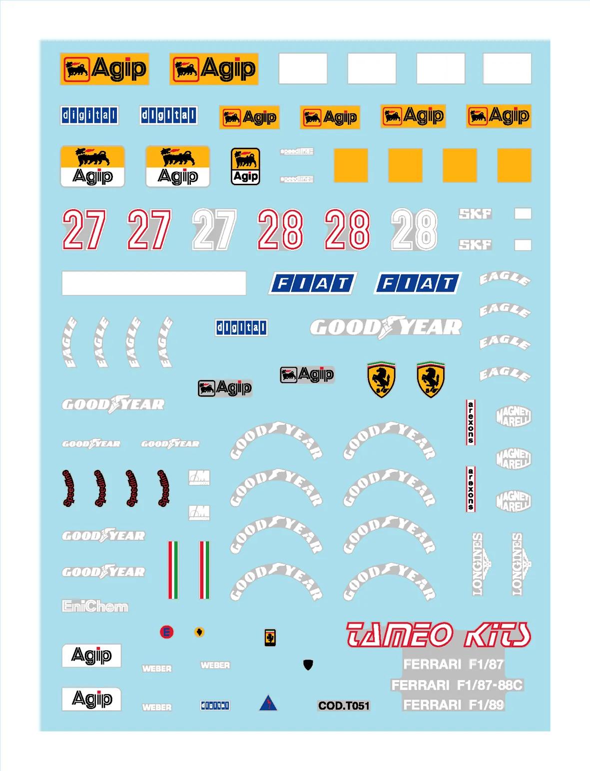 1:43 waterslide serigraphed decals Ferrari F187-88C Brazilian GP 1988 Alboreto/Berger Tameo TMK069