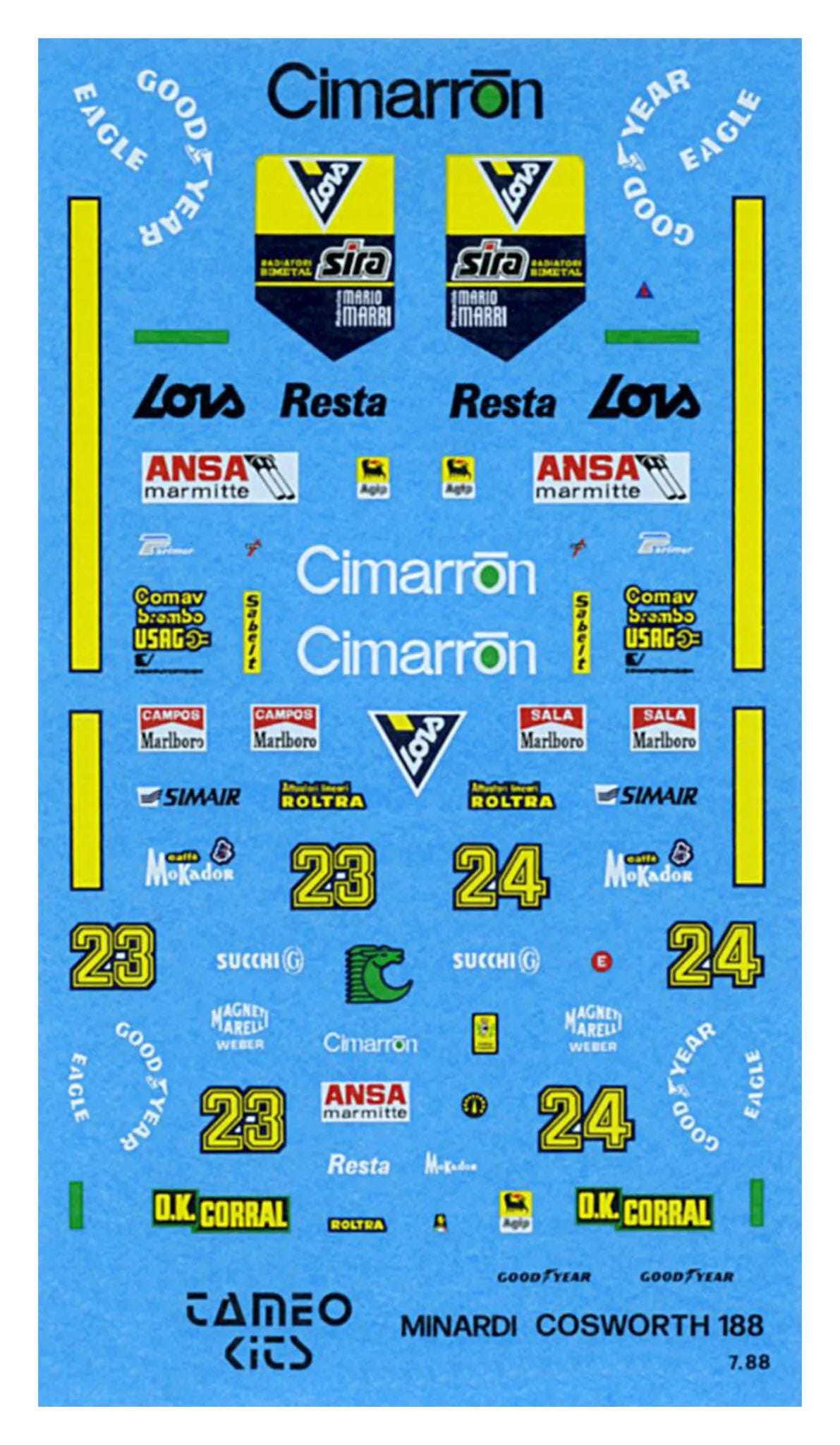 1:43 waterslide serigraphed decals Minardi Cosworth M188 Monaco GP 1988 Campos/Sala Tameo TMK072
