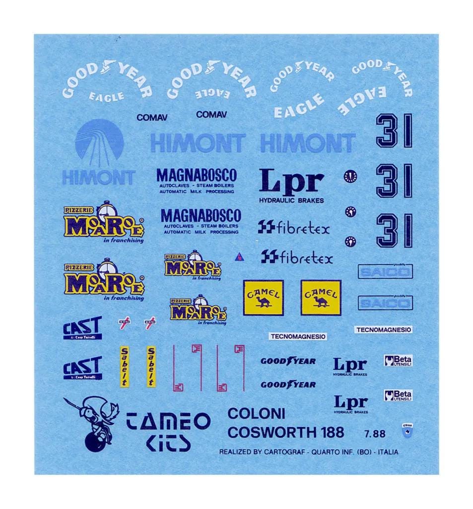 1:43 waterslide serigraphed decals Coloni Cosworth CF188 Monaco GP 1988 Tarquini Tameo TMK075