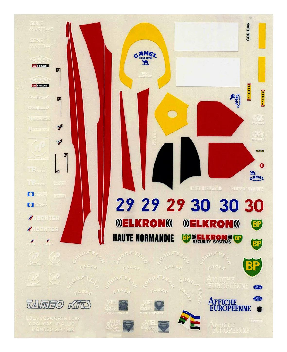1:43 waterslide serigraphed decals Lola Cosworth LC88 Monaco GP 1988 Alliot/Dalmas Tameo TMK076