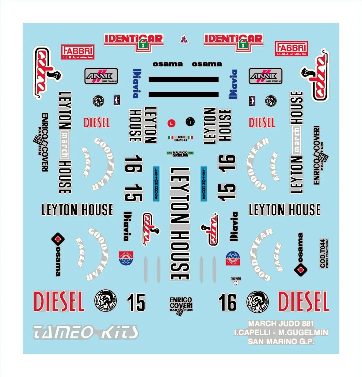1:43 waterslide serigraphed decals March Judd 881 S.Marino GP 1988 Capelli/Gugelmin Tameo TMK074